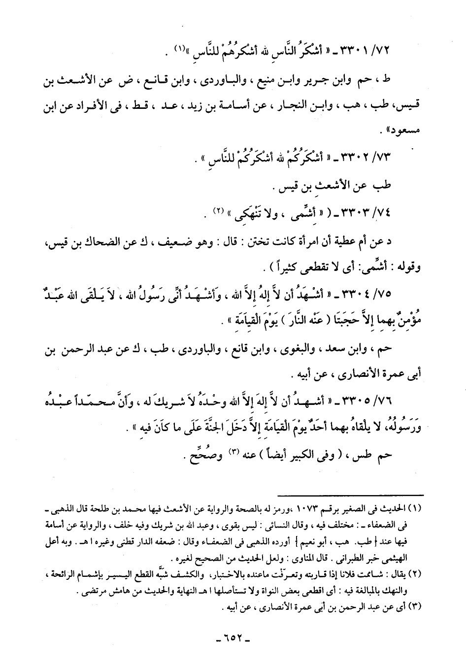 72/ 3301 - "أشْكَرُ النَّاسِ لله أشْكرُهُمْ للنَّاسِ" (¬1).