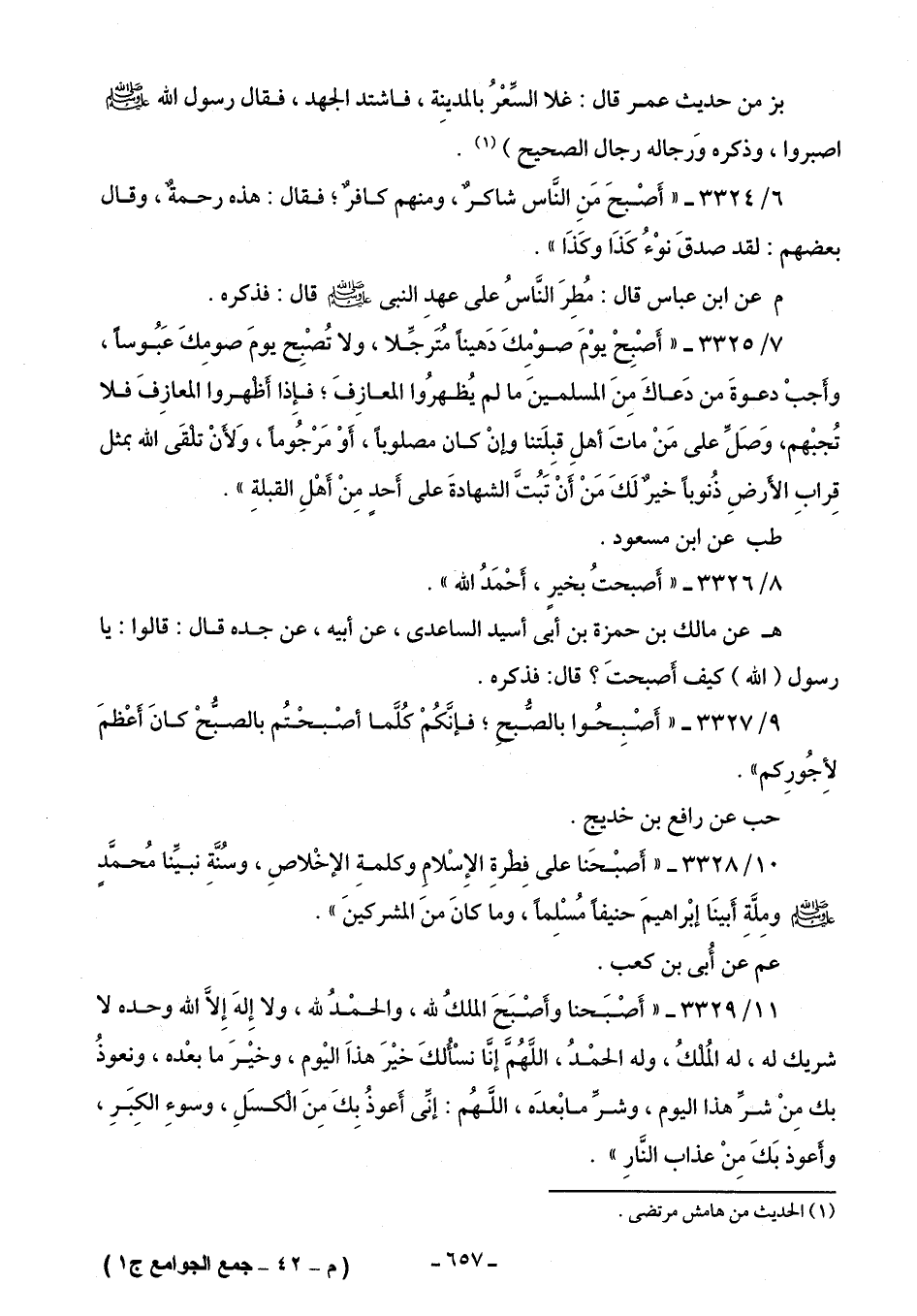 9/ 3327 - "أَصْبِحُوا بالصُّبحِ؛ فإنَّكُمْ كُلَّما أصْبحْتُم بالصبُّحْ كانَ أَعْظمَ لأجُورِكم".