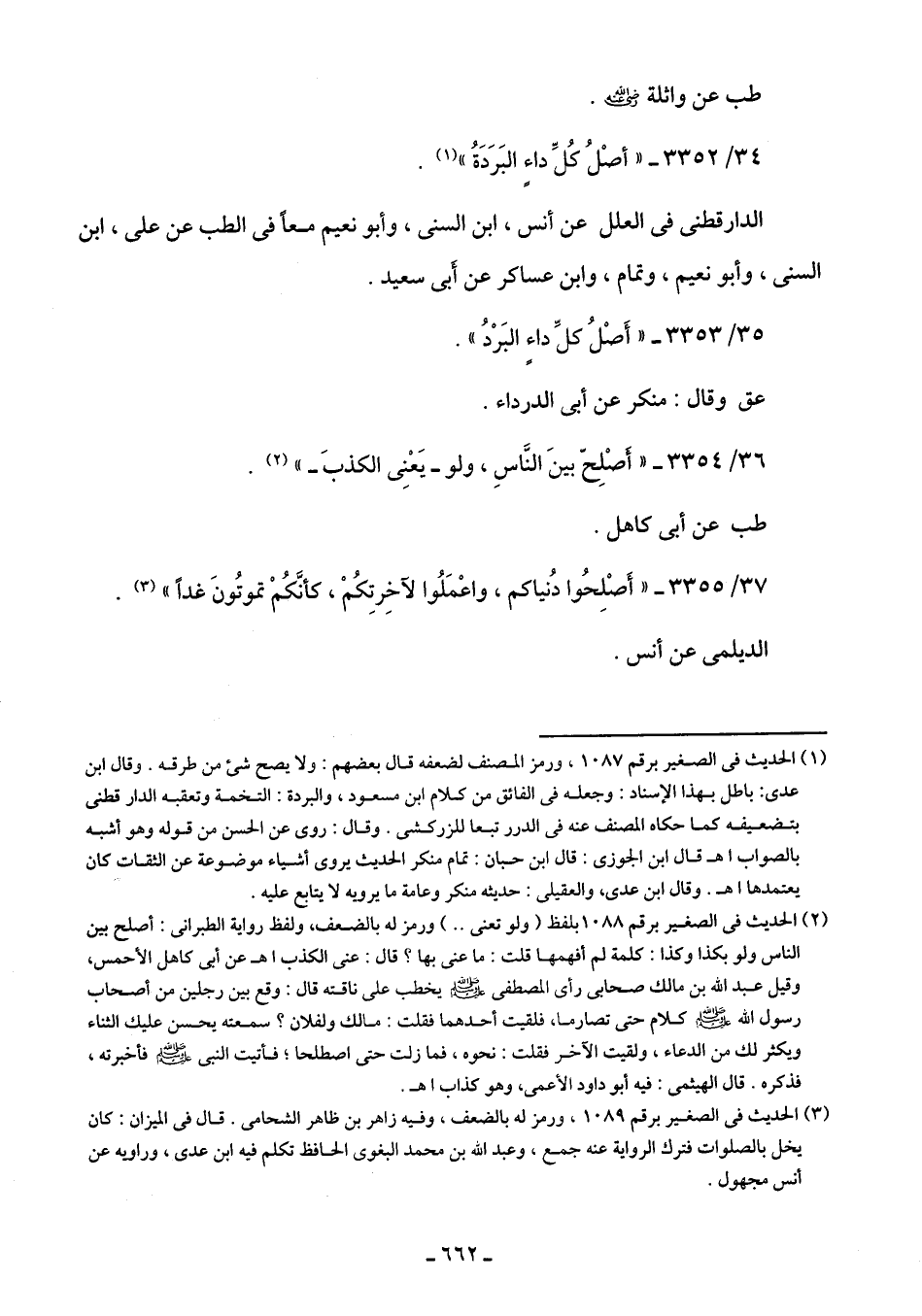 35/ 3353 - "أَصْلُ كلِّ داءٍ البَرْدُ".