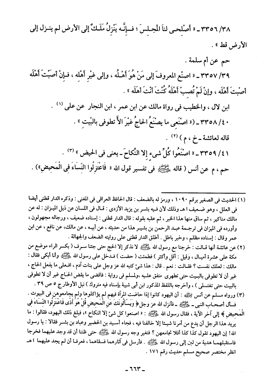 40/ 3358 - ("اصْنَعِي ما يصْنَعُ الحاجُ غيرَ ألَّا تطوفي بالبيتِ".