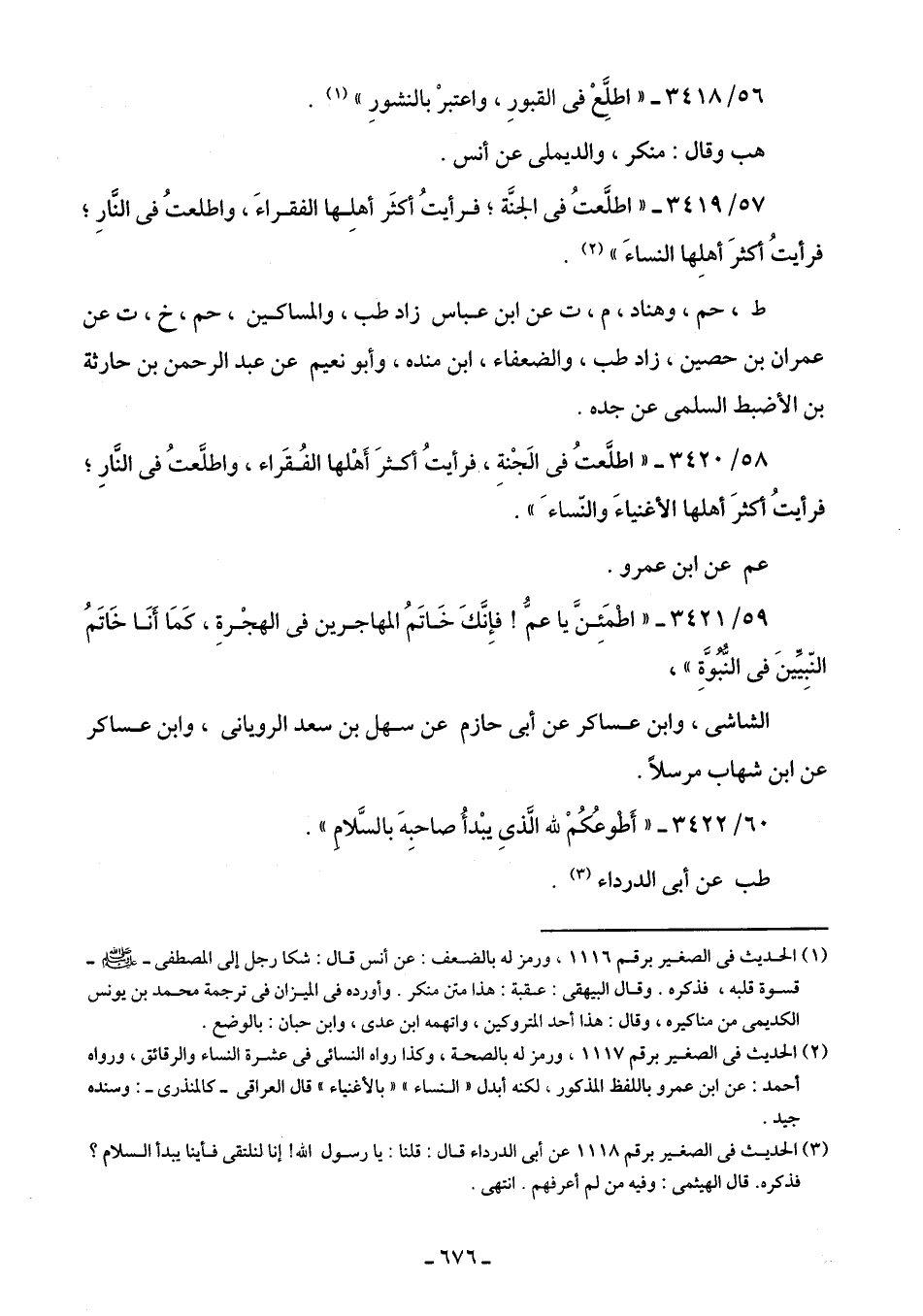 (¬3) الحديث في الصغير برقم 1118 عن أبي الدرداء قال: قلنا: يا رسول الله! إنا لنلتقى فأينا يبدأ السلام؟ فذكره. قال الهيثمي: وفيه من لم أعرفهم. انتهى.
