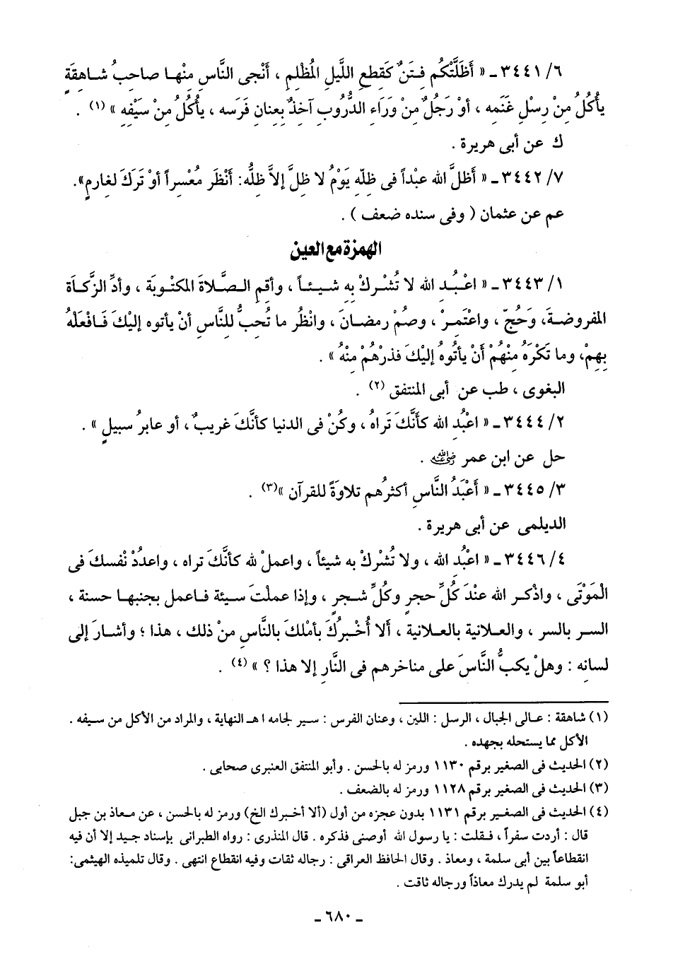 1/ 3443 - " اعْبُدِ الله لا تُشْركْ بِهِ شيئًا، وأقِم الصَّلاةَ المكتوبَة، وأدِّ الزَّكَاة المفروضةَ، وَحُجّ، واعْتَمرْ، وصُمْ رمضانَ، وانْظُر ما تُحِبُّ للِنَّاسِ أنْ يأتوه إليكَ فَافْعَلهُ بِهِمْ، وما تَكْرَهُ مِنْهُمْ أَنْ يأتُوهُ إليكَ فذرْهُمْ مِنْهُ".