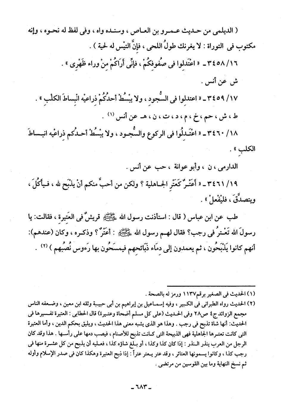 18/ 3460 - "اعْتَدِلُوا في الركوع والسُّجود، ولا يبْسُطْ أحدُكم ذِراعيْه انبساطَ الكلبِ".