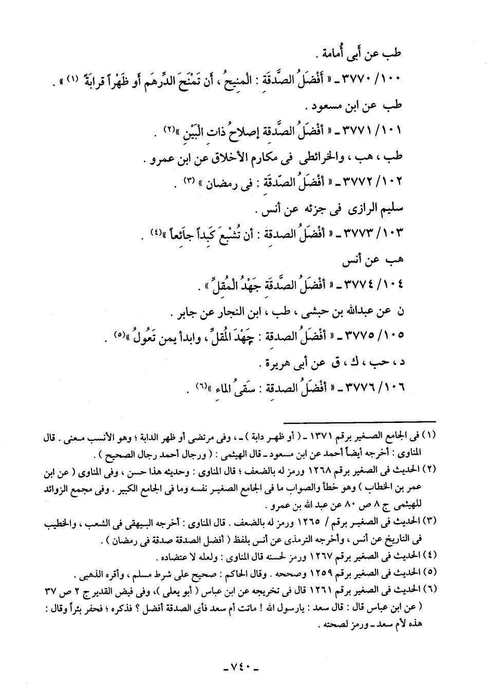 106/ 3776 - "أفْضَلُ الصدقِة: سَقىُ الماءِ" (¬6).
