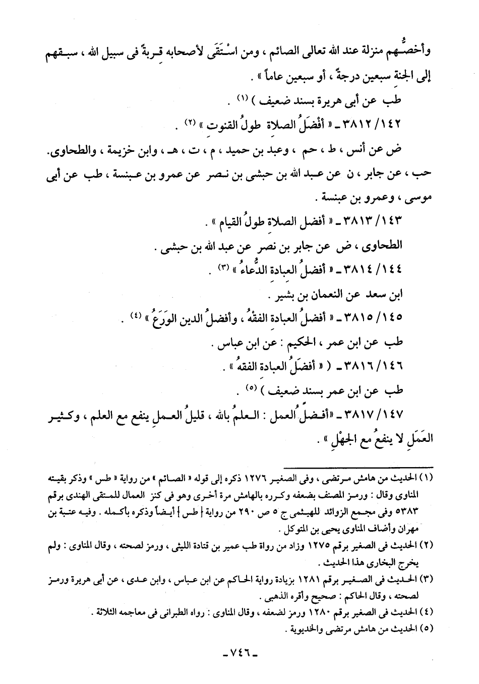 145/ 3815 - "أفضلُ العبادةِ الفقْهُ، وأفضلُ الدين الوَرعُ" ((¬4).