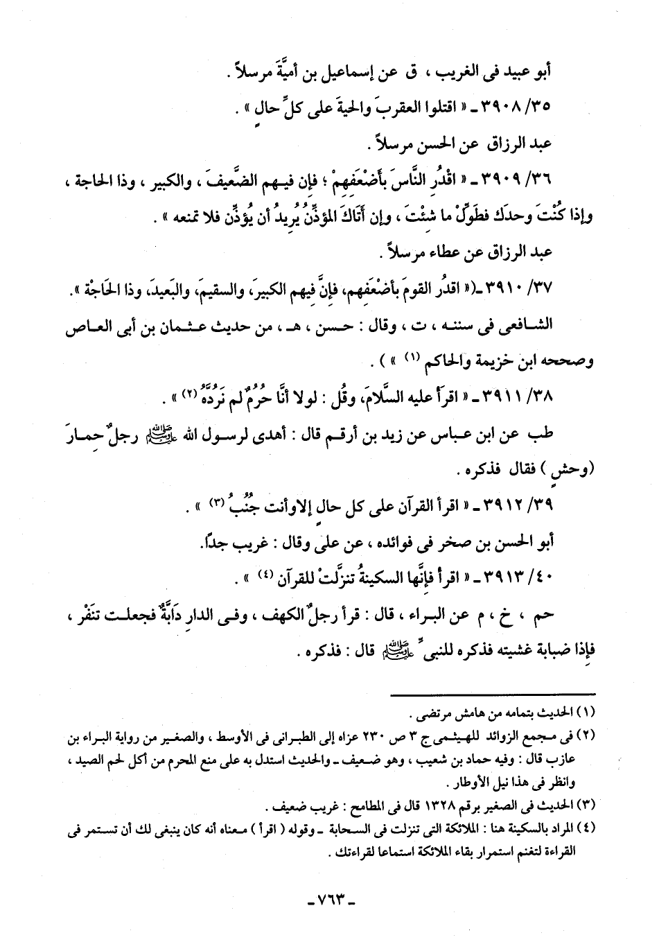 35/ 3908 - "اقتلوا العقربَ والحيةَ عَلَى كلِّ حالٍ".