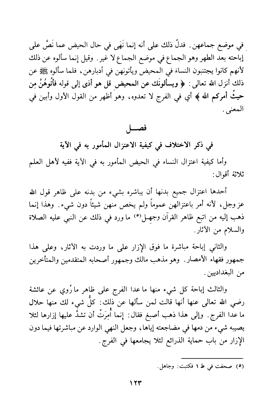 في ذكر الاختلاف في كيفية الاعتزال المأمور به في الآية