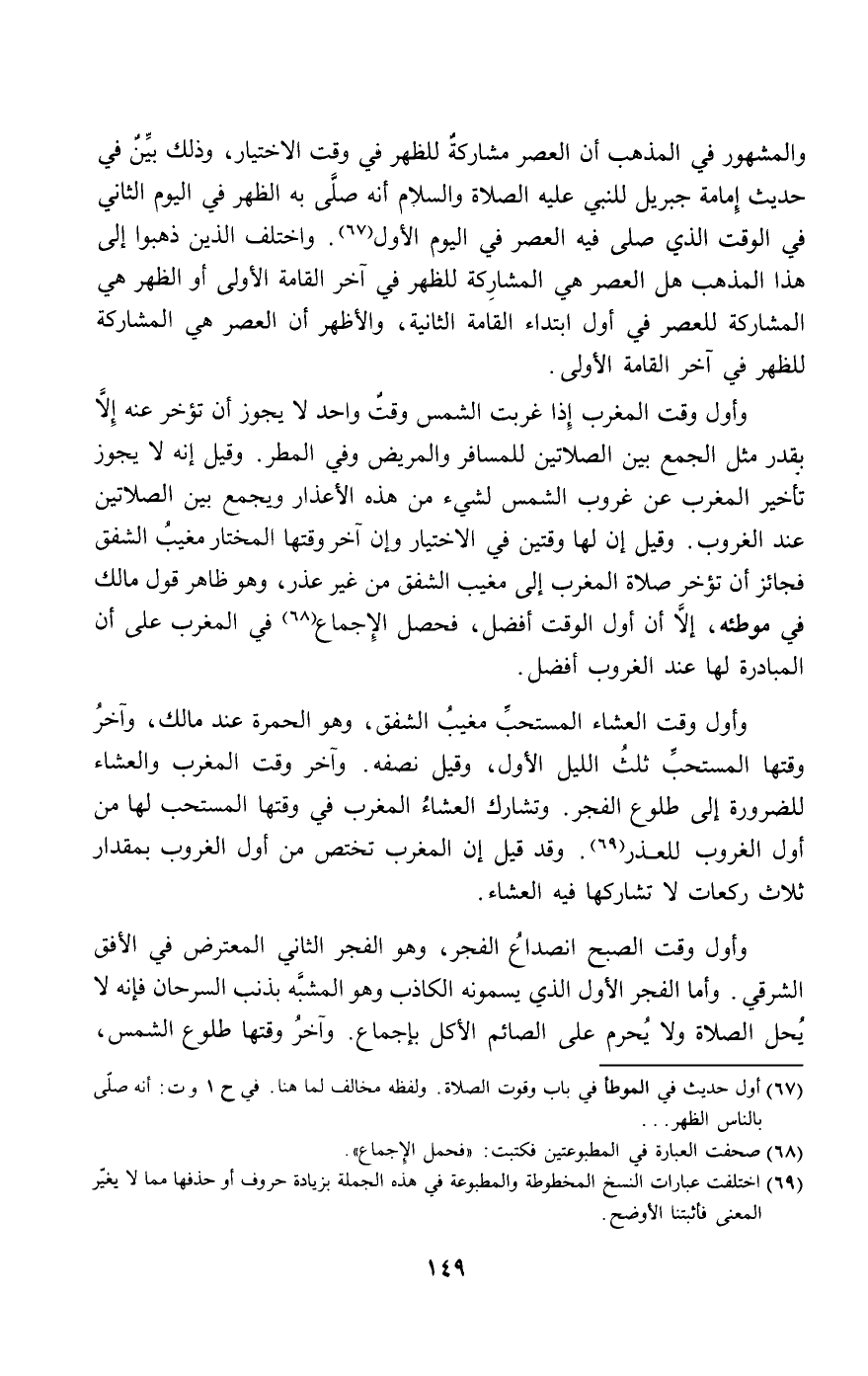 والمشهور في المذهب أن العصر مشاركة للظهر في وقت الاختيار، وذلك بين في حديث إمامة جبريل للنبي - عَلَيْهِ الصَّلَاةُ وَالسَّلَامُ - أنه صلى به الظهر في اليوم الثاني في الوقت الذي صلى فيه العصر في اليوم الأول. واختلف الذين ذهبوا إلى هذا المذهب هل العصر هي المشاركة للظهر في آخر القامة الأولى أو الظهر هي المشاركة للعصر في أول ابتداء القامة الثانية، والأظهر أن العصر هي المشاركة للظهر في آخر القامة الأولى.