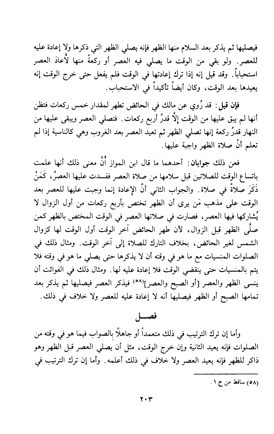 فإن قيل: قد روي عن مالك في الحائض تطهر لمقدار خمس ركعات فتظن أنها لم يبق عليها من الوقت إلا قدر أربع ركعات. فتصلي العصر ويبقى عليها من النهار قدر ركعة إنها تصلي الظهر ثم تعيد العصر بعد الغروب، وهي كالناسية إذا لم تعلم أن صلاة الظهر واجبة عليها.