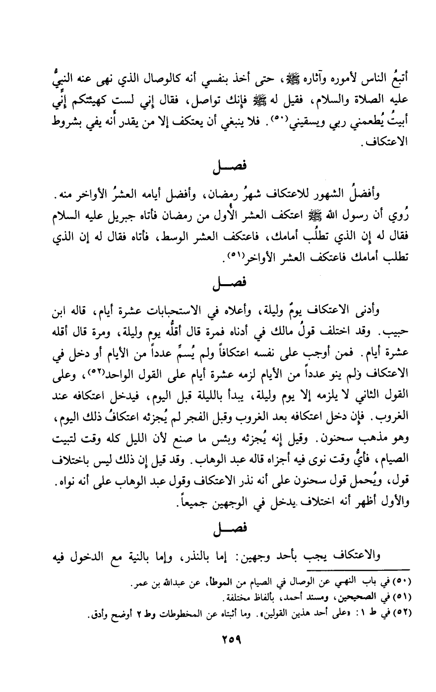 أتبع الناس لأموره وآثاره - صَلَّى اللَّهُ عَلَيْهِ وَسَلَّمَ -، حتى أخذ بنفسي أنه كالوصال الذي نهى عنه النبي - عَلَيْهِ الصَّلَاةُ وَالسَّلَامُ -، «فقيل له - صَلَّى اللَّهُ عَلَيْهِ وَسَلَّمَ - فإنك تواصل، فقال إني لست كهيئتكم إني أبيت يطعمني ربي ويسقيني». فلا ينبغي أن يعتكف إلا من يقدر أنه يفي بشروط الاعتكاف.