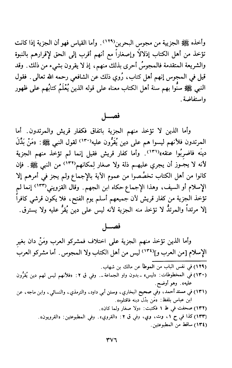 وأما الذين تؤخذ منهم الجزية على اختلاف فمشركو العرب ومن دان بغير الإسلام [من العرب و] ليس من أهل الكتاب ولا المجوس. أما مشركو العرب