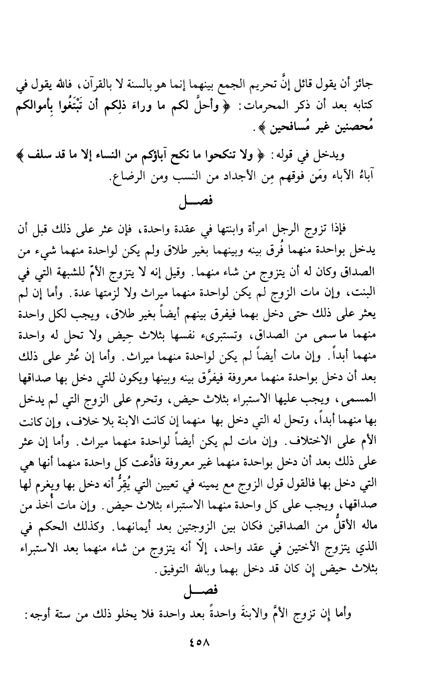جائز أن يقول قائل إن تحريم الجمع بينهما إنما هو بالسنة لا بالقرآن، فالله يقول في كتابه بعد أن ذكر المحرمات: {وَأُحِلَّ لَكُمْ مَا وَرَاءَ ذَلِكُمْ أَنْ تَبْتَغُوا بِأَمْوَالِكُمْ مُحْصِنِينَ غَيْرَ مُسَافِحِينَ} [النساء: 24].