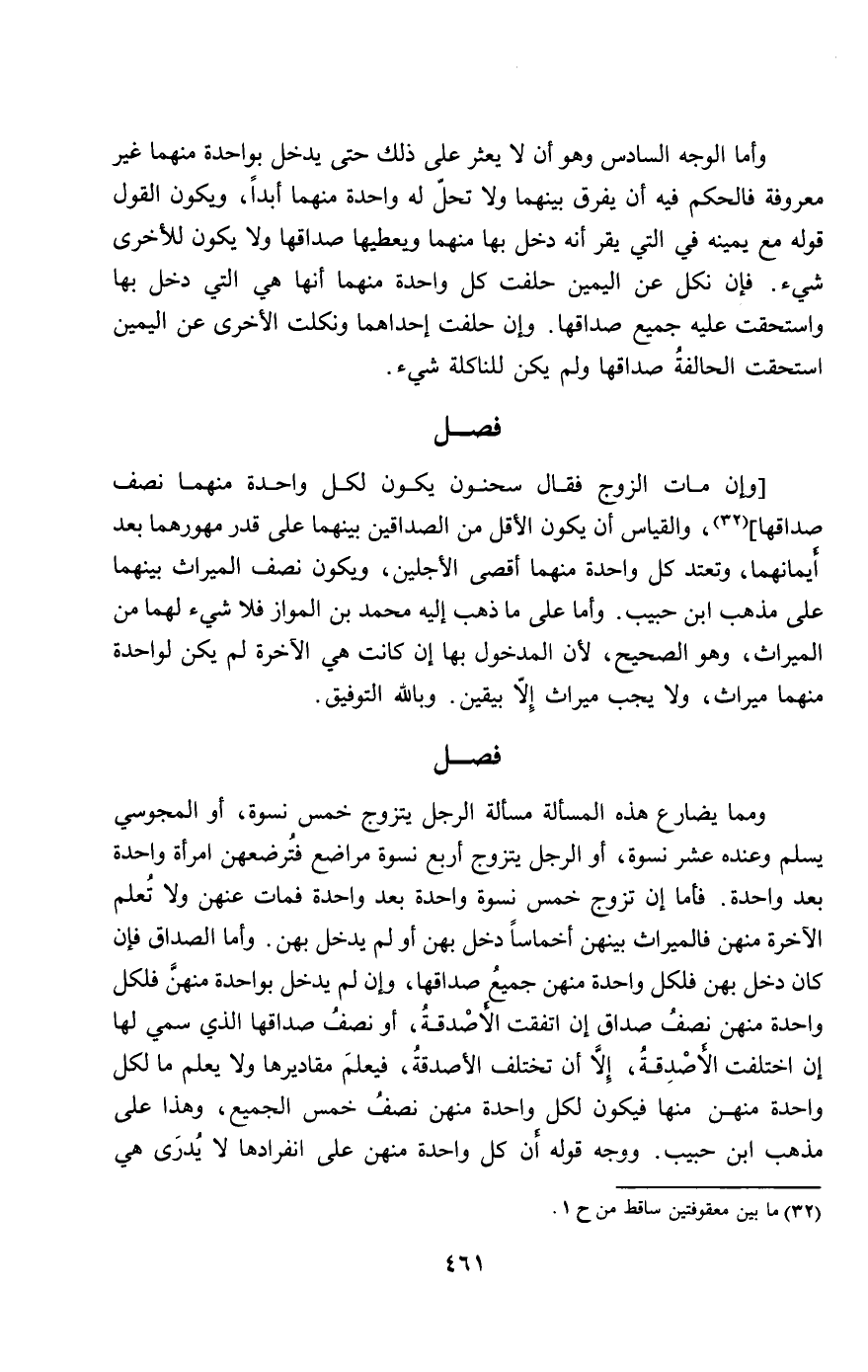 ومما يضارع هذه المسألة مسألة الرجل يتزوج خمس نسوة، أو المجوسي يسلم وعنده عشر نسوة، أو الرجل يتزوج أربع نسوة مراضع فترضعهن امرأة واحدة بعد واحدة. فأما إن تزوج خمس نسوة واحدة بعد واحدة فمات عنهن ولا تعلم الآخرة منهن فالميراث بينهن أخماسا دخل بهن أو لم يدخل بهن. وأما الصداق فإن كان دخل بهن فلكل واحدة منهن جميع صداقها، وإن لم يدخل بواحدة منهن فلكل واحدة منهن نصف صداق إن اتفقت الأصدقة، أو نصف صداقها الذي سمي لها إن اختلفت الأصدقة، إلا أن تختلف الأصدقة، فيعلم مقاديرها ولا يعلم ما لكل واحدة منهن منها فيكون لكل واحدة منهن نصف خمس الجميع، وهذا على مذهب ابن حبيب. ووجه قوله أن كل واحدة منهن على انفرادها لا يدرى هي