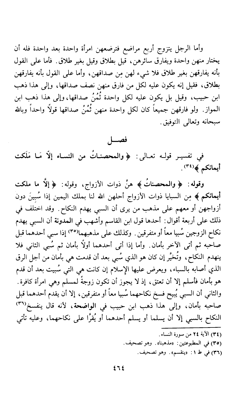 في تفسير قوله تعالى {وَالْمُحْصَنَاتُ مِنَ النِّسَاءِ إِلا مَا مَلَكَتْ أَيْمَانُكُمْ} [النساء: 24].