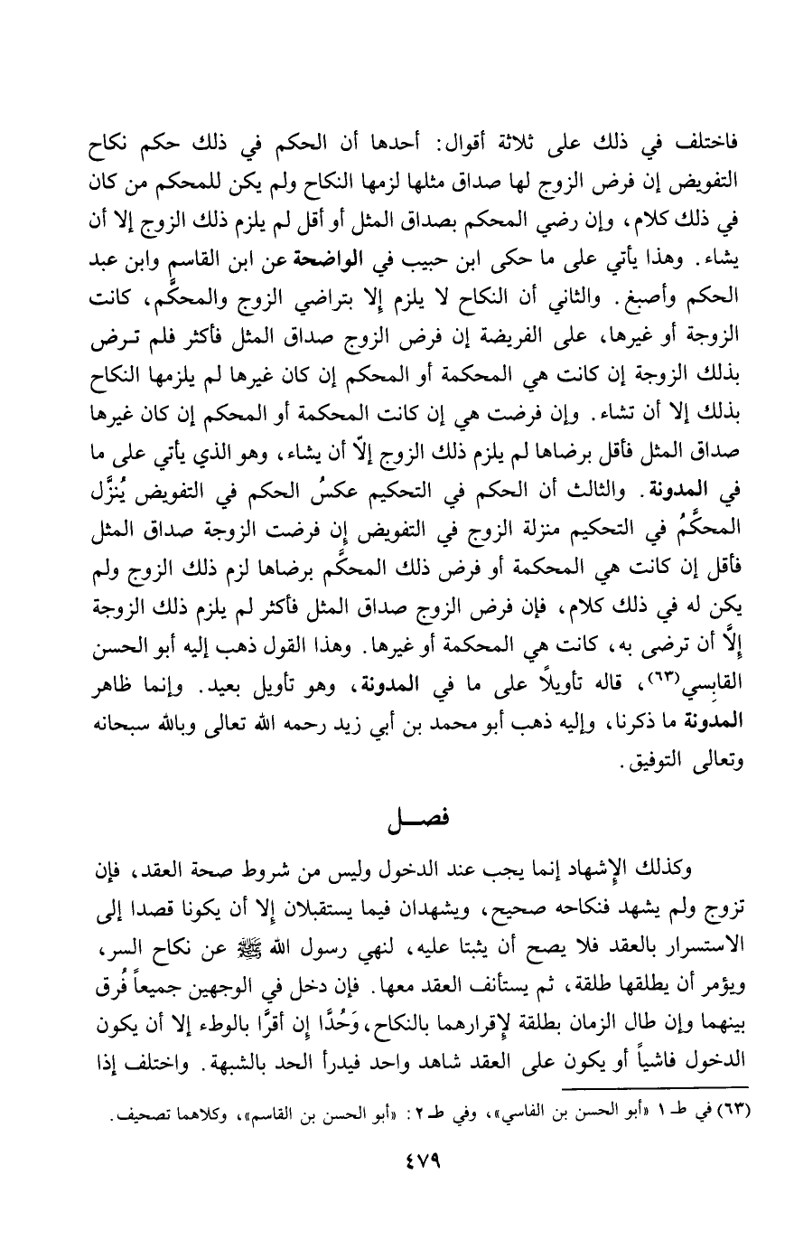وكذلك الإشهاد إنما يجب عند الدخول وليس من شروط صحة العقد، فإن تزوج ولم يشهد فنكاحه صحيح، ويشهدان فيما يستقبلان إلا أن يكونا قصدا إلى الاستسرار بالعقد فلا يصح أن يثبتا عليه، «لنهي رسول الله - صَلَّى اللَّهُ عَلَيْهِ وَسَلَّمَ - عن نكاح السر» ويؤمر أن يطلقها طلقة، ثم يستأنف العقد معها. فإن دخل في الوجهين جميعا فرق بينهما وإن طال الزمان بطلقة لإقرارهما بالنكاح، وحدا إن أقرا بالوطء إلا أن يكون الدخول فاشيا أو يكون على العقد شاهد واحد فيدرأ الحد بالشبهة. واختلف إذا