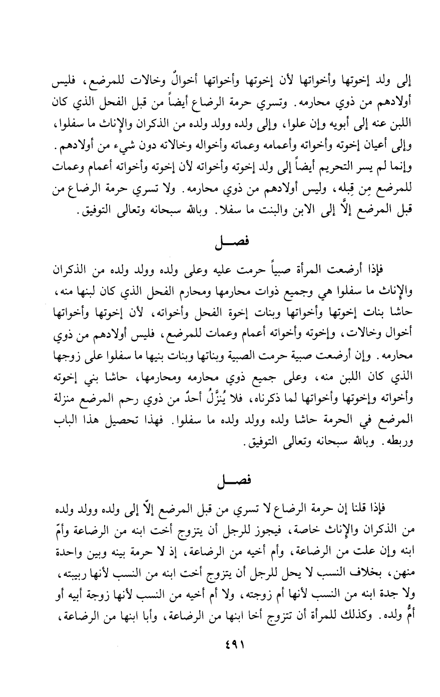 فإذا أرضعت المرأة صبيا حرمت عليه وعلى ولده وولد ولده من الذكران والإناث ما سفلوا هي وجميع ذوات محارمها ومحارم الفحل الذي كان لبنها منه، حاشا بنات إخوتها وأخواتها وبنات إخوة الفحل وأخواته؛ لأن إخوتها وأخواتها أخوال وخالات، وإخوته وأخواته أعمام وعمات للمرضع، فليس أولادهم من ذوي محارمه. وإن أرضعت صبية حرمت الصبية وبناتها وبنات بنيها ما سفلوا على زوجها الذي كان اللبن منه، وعلى جميع ذوي محارمه ومحارمها، حاشا بني إخوته وأخواته وإخوتها وأخواتها لما ذكرناه، فلا ينزل أحد من ذوي رحم المرضع منزلة المرضع في الحرمة حاشا ولده وولد ولده ما سفلوا. فهذا تحصيل هذا الباب وربطه. وبالله سبحانه وتعالى التوفيق.