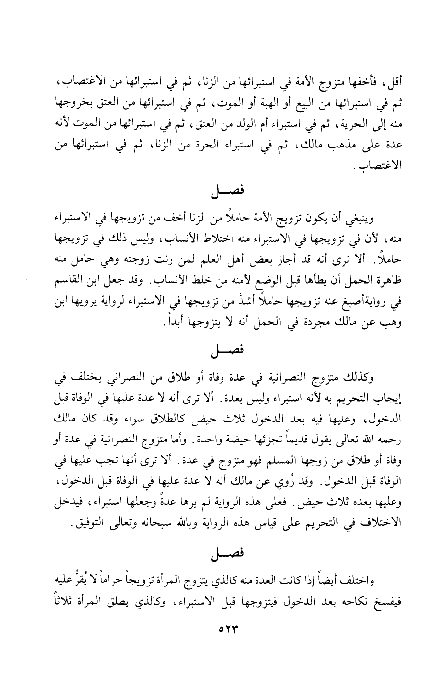 وكذلك متزوج النصرانية في عدة وفاة أو طلاق من النصراني يختلف في إيجاب التحريم به؛ لأنه استبراء وليس بعدة. ألا ترى أنه لا عدة عليها في الوفاة قبل الدخول، وعليها فيه بعد الدخول ثلاث حيض كالطلاق سواء، وقد كان مالك - رَحِمَهُ اللَّهُ تَعَالَى - يقول قديما: تجزئها حيضة واحدة. وأما متزوج النصرانية في عدة أو وفاة أو طلاق من زوجها المسلم فهو متزوج في عدة. ألا ترى أنها تجب عليها في الوفاة قبل الدخول. وقد روي عن مالك أنه لا عدة عليها في الوفاة قبل الدخول، وعليها بعده ثلاث حيض. فعلى هذه الرواية لم يرها عدة وجعلها استبراء، فيدخل الاختلاف في التحريم على قياس هذه الرواية، وبالله سبحانه وتعالى التوفيق.