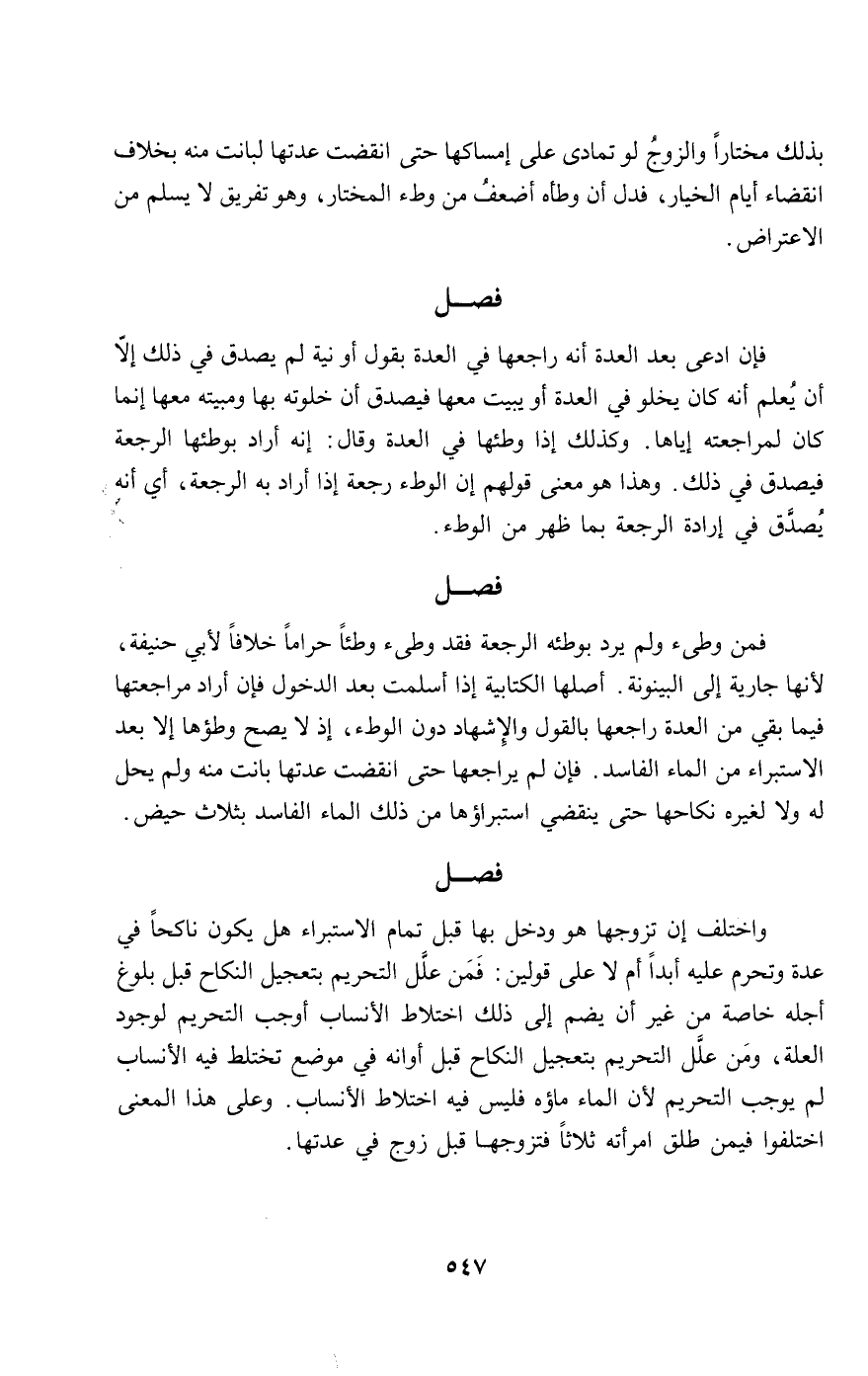 فمن وطئ ولم يرد بوطئه الرجعة فقد وطئ وطئا حراما خلافا لأبي حنيفة؛ لأنها جارية إلى البينونة. أصلها الكتابية إذا أسلمت بعد الدخول فإن أراد مراجعتها فيما بقي من العدة راجعها بالقول والإشهاد دون الوطء؛ إذ لا يصح وطؤها إلا بعد الاستبراء من الماء الفاسد. فإن لم يراجعها حتى انقضت عدتها بانت منه ولم يحل له ولا لغيره نكاحها حتى ينقضي استبراؤها من ذلك الماء الفاسد بثلاث حيض.