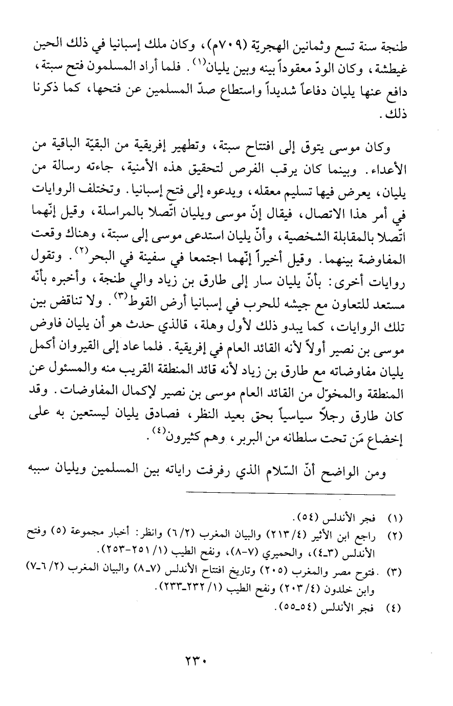 (2) راجع ابن الأثير (4/ 213) والبيان المغرب (2/ 6) وانظر: أخبار مجموعة (5) وفتح الأندلس (3 - 4)، والحميري (7 - 8)، ونفح الطيب (1/ 251 - 253).