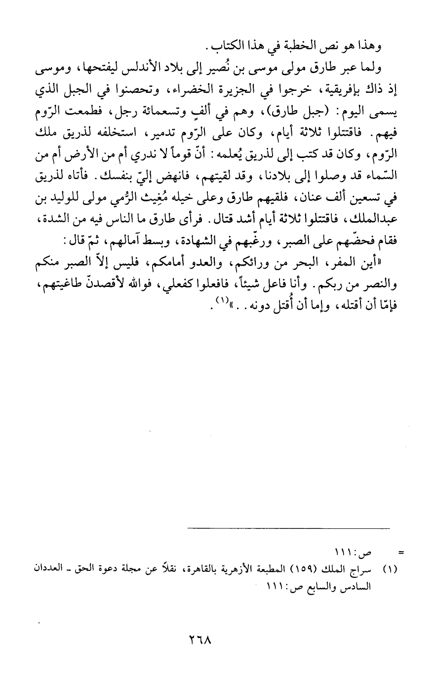 (1) سراج الملك (159) المطبعة الأزهرية بالقاهرة، نقلاً عن مجلة دعوة الحق - العددان السادس والسابع ص: 111.