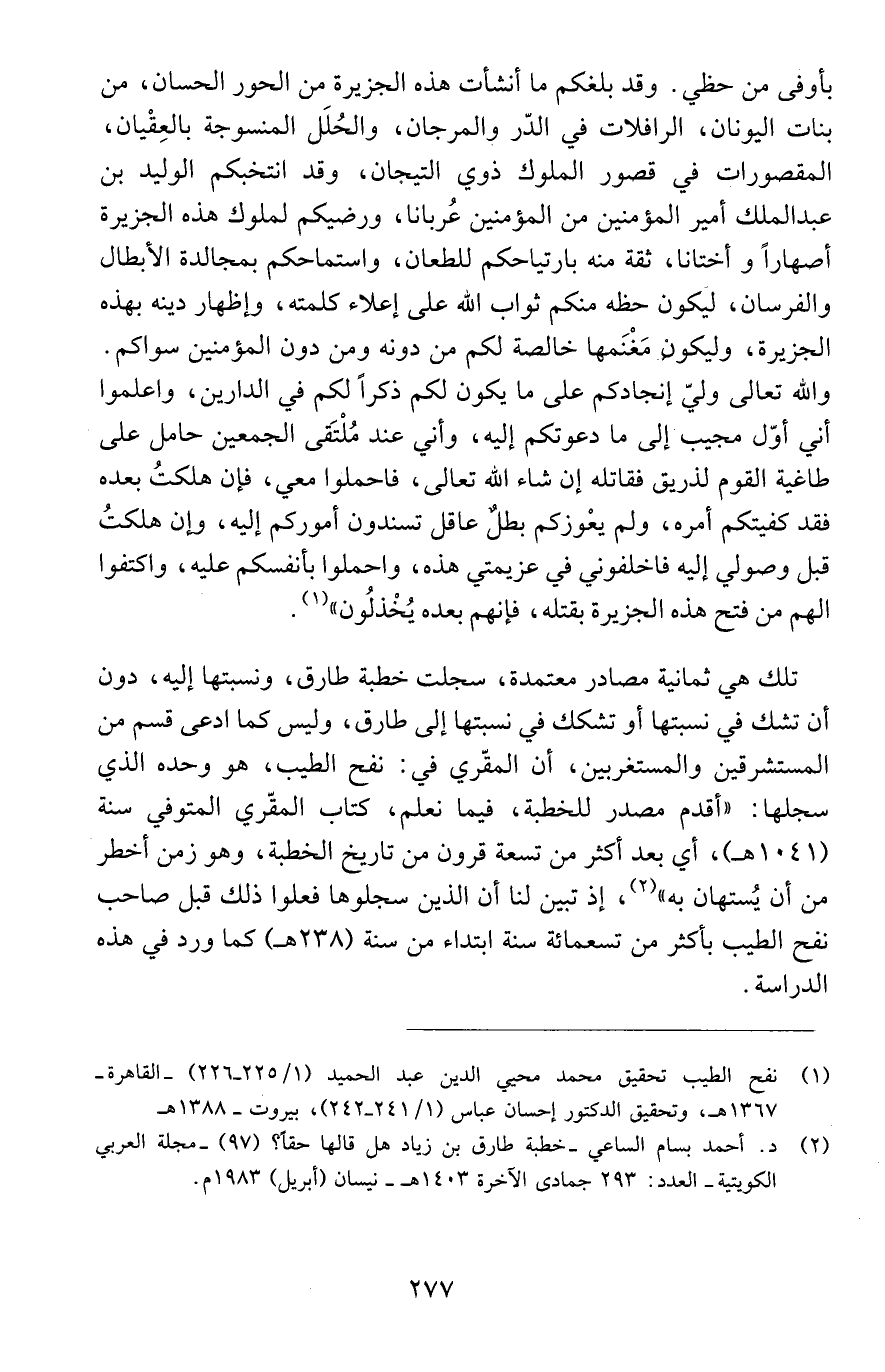 (2) د. أحمد بسام الساعي - خطبة طارق بن زياد هل قالها حقاً؟ (97) - مجلة العربي الكويتية - العدد: 293 جمادى الآخرة 1403 هـ - نيسان (أبريل) 1983 م.