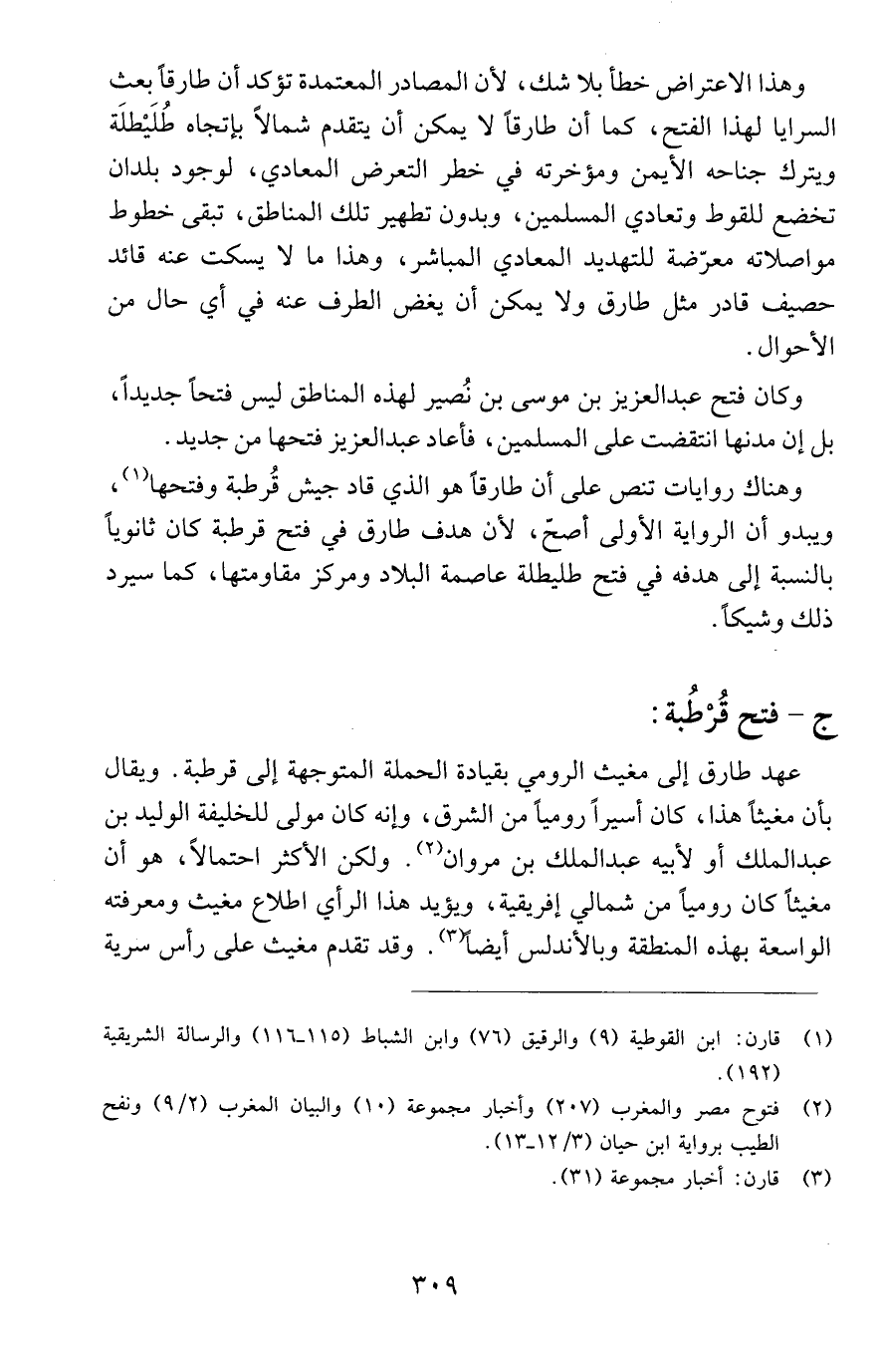 وهذا الاعتراض خطأ بلا شك، لأن المصادر المعتمدة تؤكد أن طارقاً بعث السرايا لهذا الفتح، كما أن طارقاً لا يمكن أن يتقدم شمالاً بإتجاه طُلَيْطلَة ويترك جناحه الأيمن ومؤخرته في خطر التعرض المعادي، لوجود بلدان تخضع للقوط وتعادي المسلمين، وبدون تطهير تلك المناطق، تبقى خطوط مواصلاته معرّضة للتهديد المعادي المباشر، وهذا ما لا يسكت عنه قائد حصيف قادر مثل طارق ولا يمكن أن يغض الطرف عنه في أي حال من الأحوال.