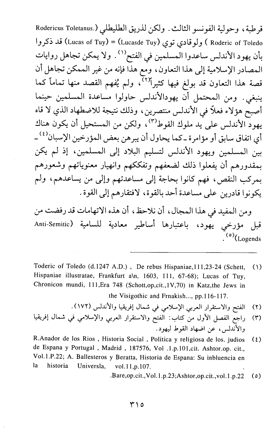 (4) R.Anador de los Rios , Historia Social , Politica y religiosa de los. judios de Espana y Portugal , Madrid , 187576, Vol.1.p.101,cit. Ashtor.op. cit., Vol.1.P.22, A. Ballesteros y Beratta, Historia de Espana: Su inbluencia en la historia Universla, vol.11,p.107.