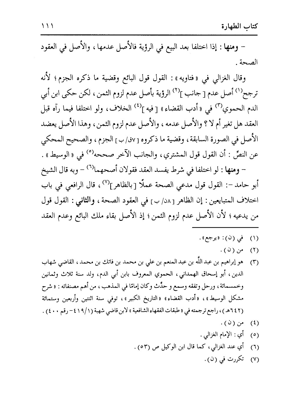 (¬6) أي عند الغزالي، كما قال ابن الوكيل ص (53).