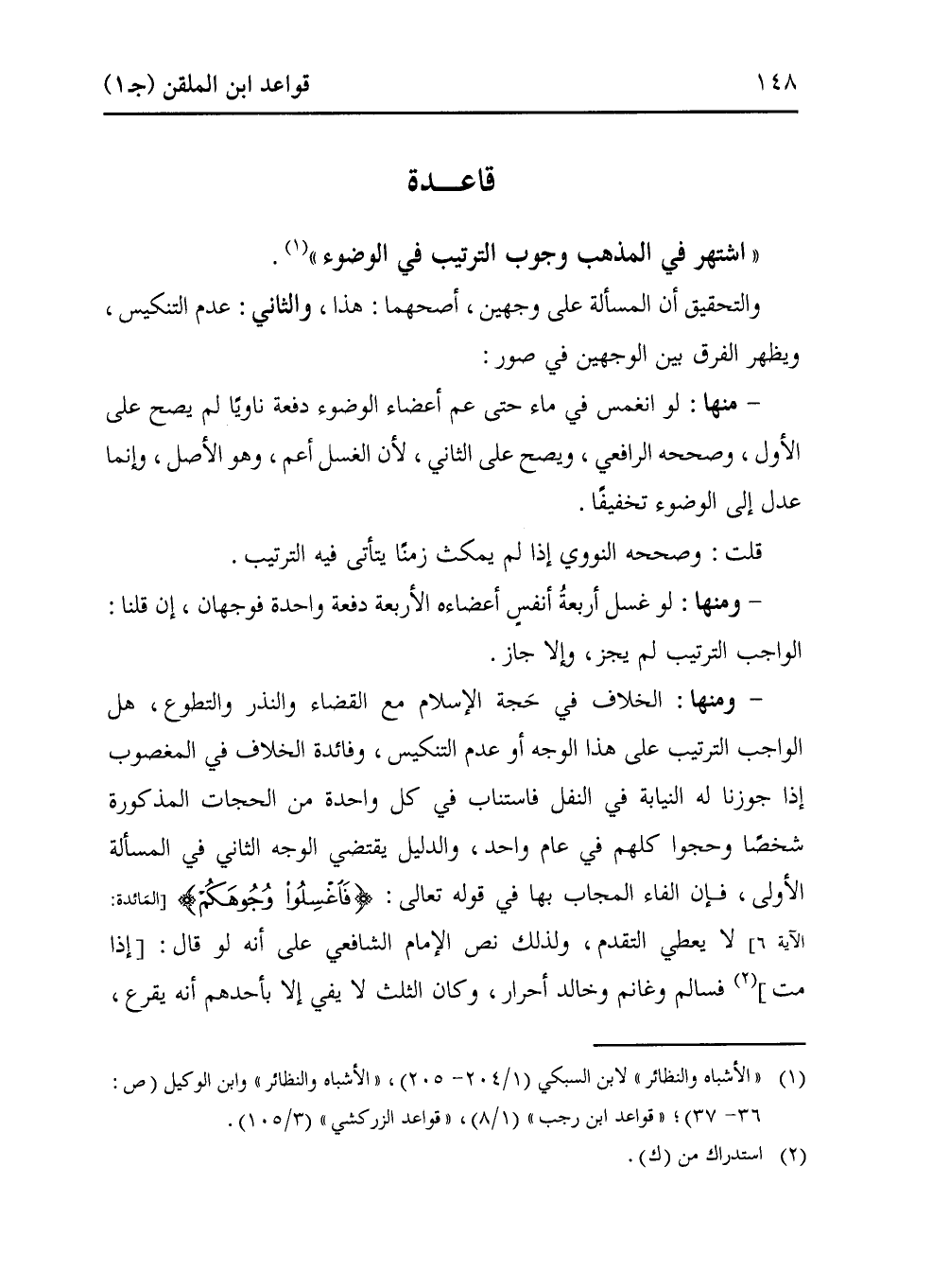 (¬1) "الأشباه والنظائر" لابن السبكي (1/ 204 - 205)، "الأشباه والنظائر" وابن الوكيل (ص: 36 - 37)؛ "قواعد ابن رجب" (1/ 8)، "قواعد الزركشي" (3/ 105).