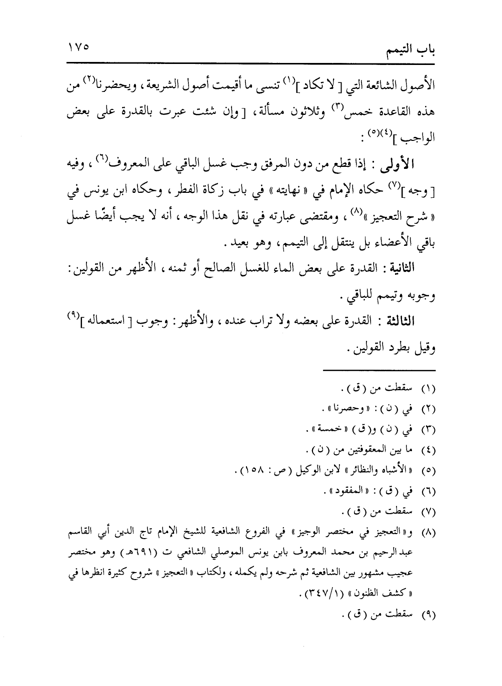 (¬8) و"التعجيز في مختصر الوجيز" في الفروع الشافعية للشيخ الإمام تاج الدين أبي القاسم عبد الرحيم بن محمد المعروف بابن يونس الموصلي الشافعي ت (691 هـ) وهو مختصر عجيب مشهور بين الشافعية ثم شرحه ولم يكمله، ولكتاب "التعجيز" شروح كثيرة انظرها في "كشف الظنون" (1/ 347).