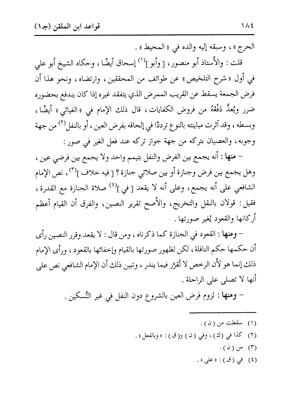 قلت: والأستاذ أبو منصور، [وأبو] (¬1) إسحاق أيضًا، وحكاه الشيخ أبو علي في أول "شرح التلخيص" عن طوائف من المحققين، وارتضاه، ونحو هذا أن فرض الجمعة يسقط عن القريب الممرض الذي يتفقد غيره إذا كان يندفع بحضوره ضرر ويُعدُّ دَفْعُهُ من فروض الكفايات، قال ذلك الإمام في "الغياثي" أيضًا، وبسطه، وقد آثرت مباينته بالنوع ترددًا في إلحاقه بفرض العين، أو بالنفل (¬2) من جهة وجوبه، والعصيان بتركه من جهة جواز تركه عند فعل الغير في صور: