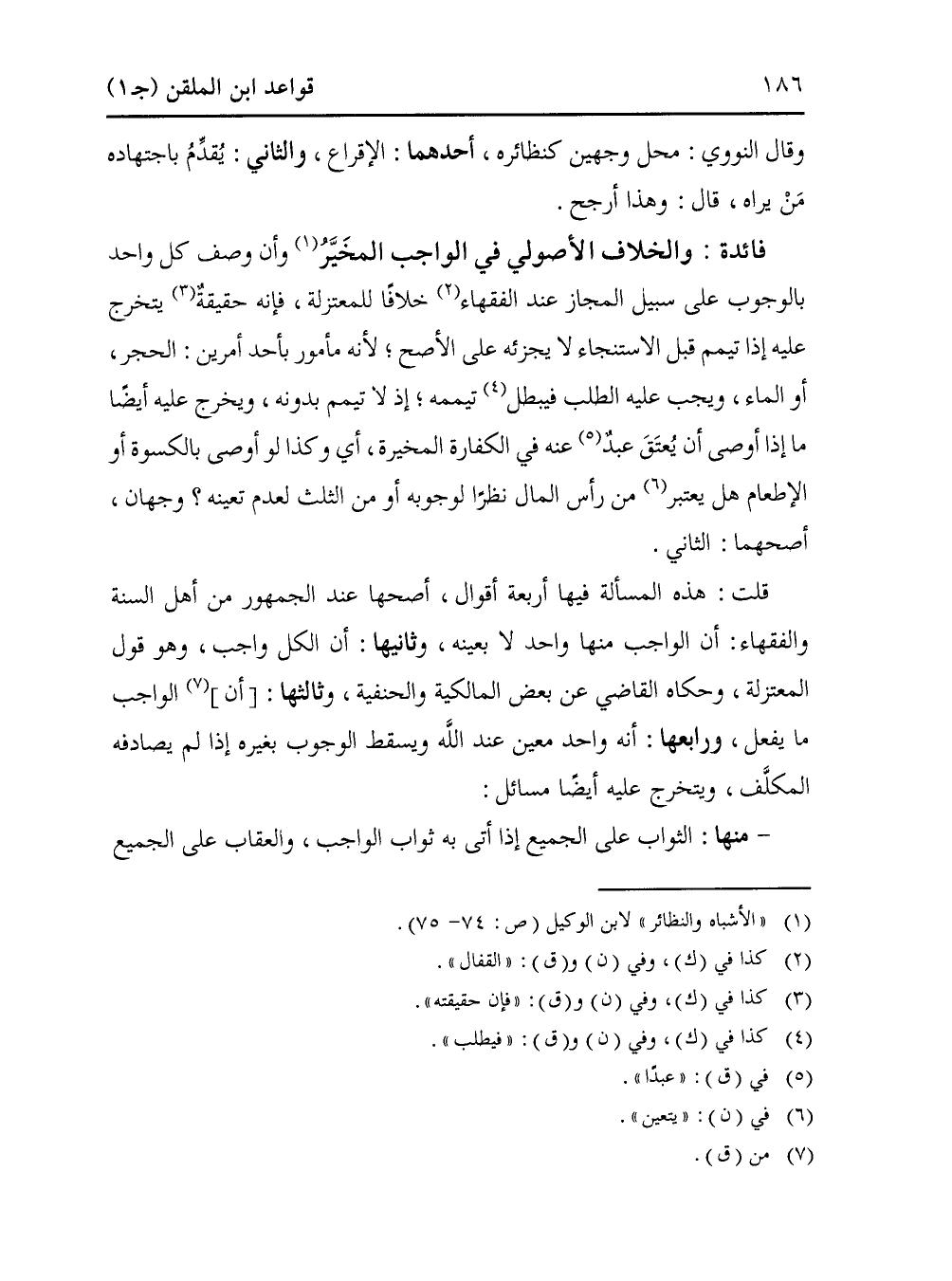 (¬1) "الأشباه والنظائر" لابن الوكيل (ص: 74 - 75).