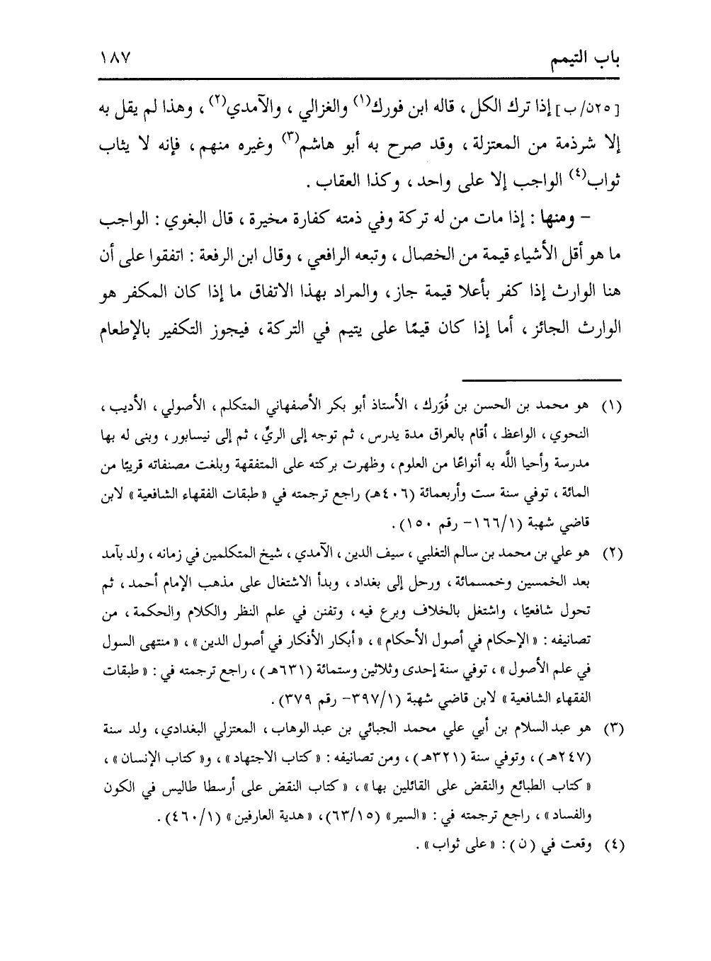 (¬3) هو عبد السلام بن أبي علي محمد الجبائي بن عبد الوهاب، المعتزلي البغدادي، ولد سنة (247 هـ)، وتوفي سنة (321 هـ)، ومن تصانيفه: "كتاب الاجتهاد"، و"كتاب الإنسان"، "كتاب الطبائع والنقض على القائلين بها"، "كتاب النقض على أرسطا طاليس في الكون والفساد"، راجع ترجمته في: "السير" (15/ 63)، "هدية العارفين" (1/ 460).