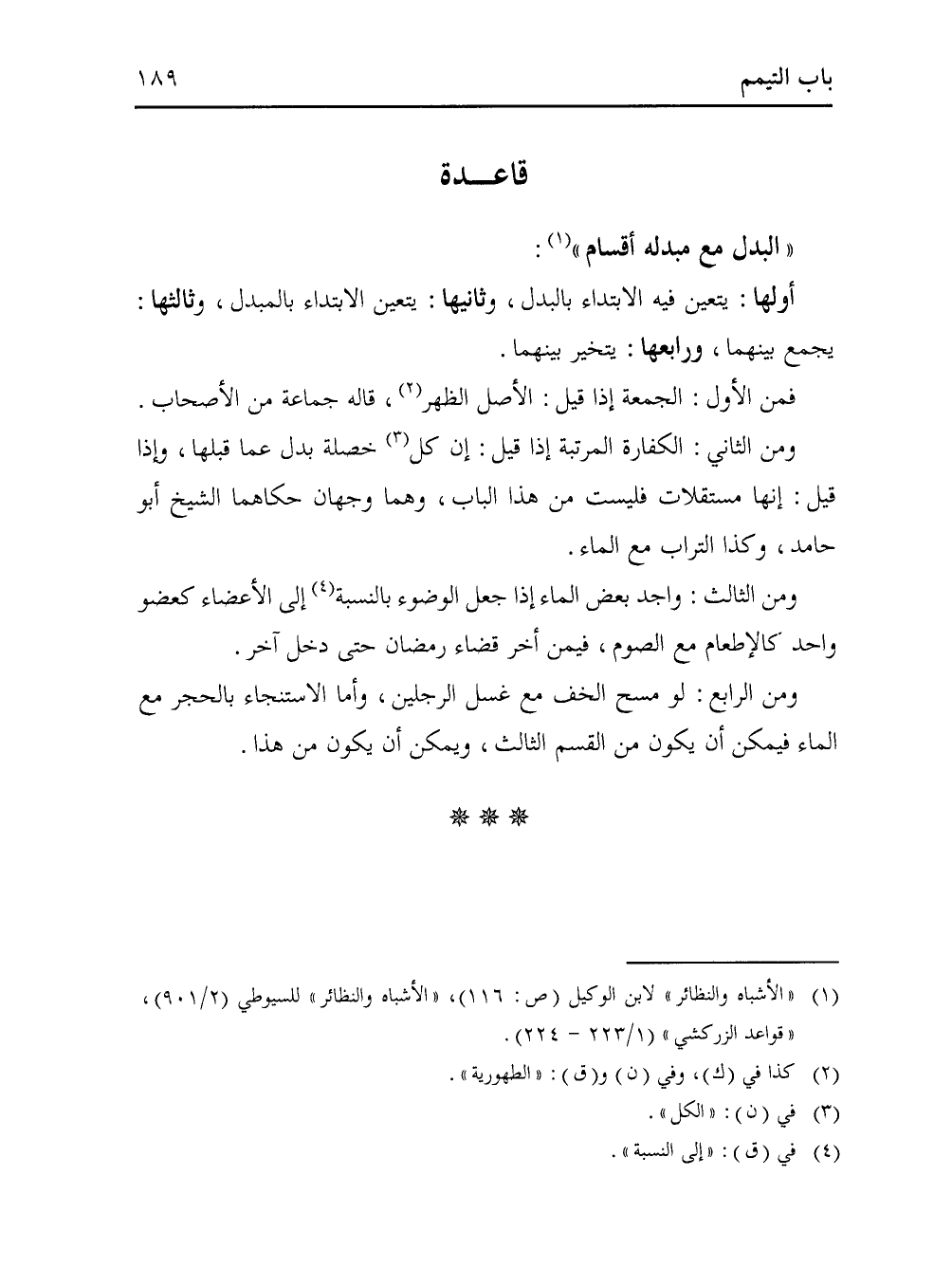 (¬1) "الأشباه والنظائر" لابن الوكيل (ص: 116)، "الأشباه والنظائر" للسيوطي (901/ 2)، "قواعد الزركشي" (1/ 223 - 224).