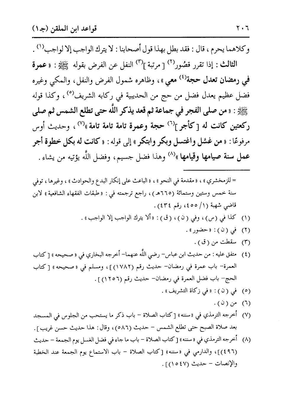 الثالث: إذا تقرر قصُور (¬2) [مرتبة] (¬3) النفل عن الفرض بقوله - صلى الله عليه وسلم -: "عمرة في رمضان تعدل حجة (¬4) معي"، وظاهره شمول الفرض والنفل، والمكي وغيره فضل عظيم يعدل فضل من حج من الحديبية في ركابه الشريف (¬5)، وكذا قوله - صلى الله عليه وسلم -: "من صلى الفجر في جماعة ثم قعد يذكر الله حتى تطلع الشمس ثم صلى ركعتين كانت له [كأجر] (¬6) حجة وعمرة تامة تامة تامة" (¬7)، وحديث أوس مرفوعًا: "من غسَّل واغتسل وبكر وابتكر" إلى قوله: "كانت له بكل خطوة أجر عمل سنة صيامها وقيامها" (¬8) وهذا فضل جسيم، وفضل الله يؤتيه من يشاء.