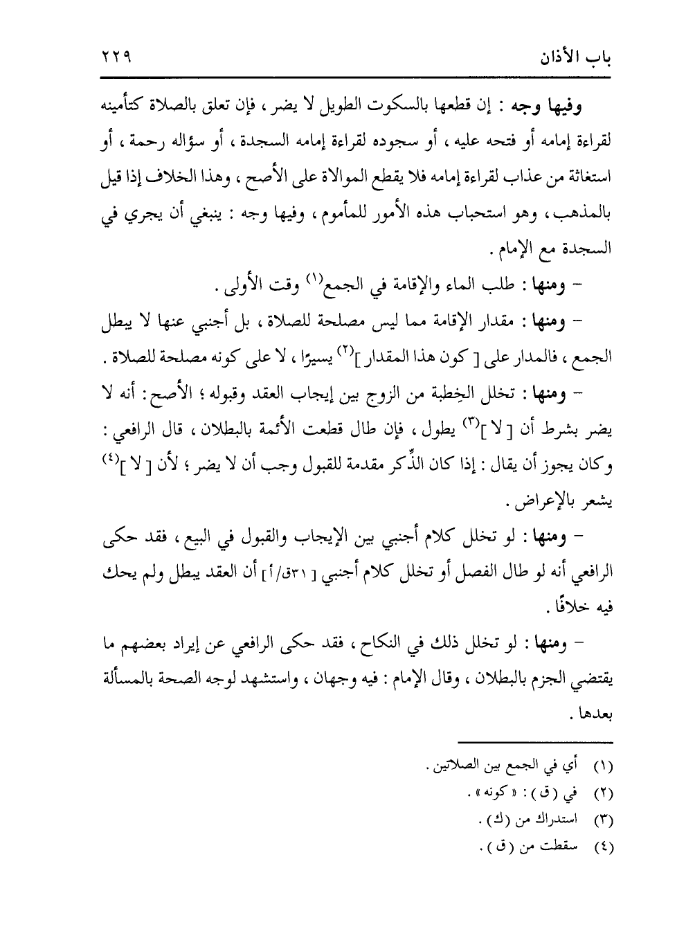 - ومنها: لو تخلل كلام أجنبي بين الإيجاب والقبول في البيع، فقد حكى الرافعي أنه الموطأل الفصل أو تخلل كلام أجنبي [31 ق/ أ] أن العقد يبطل ولم يحك فيه خلافًا.