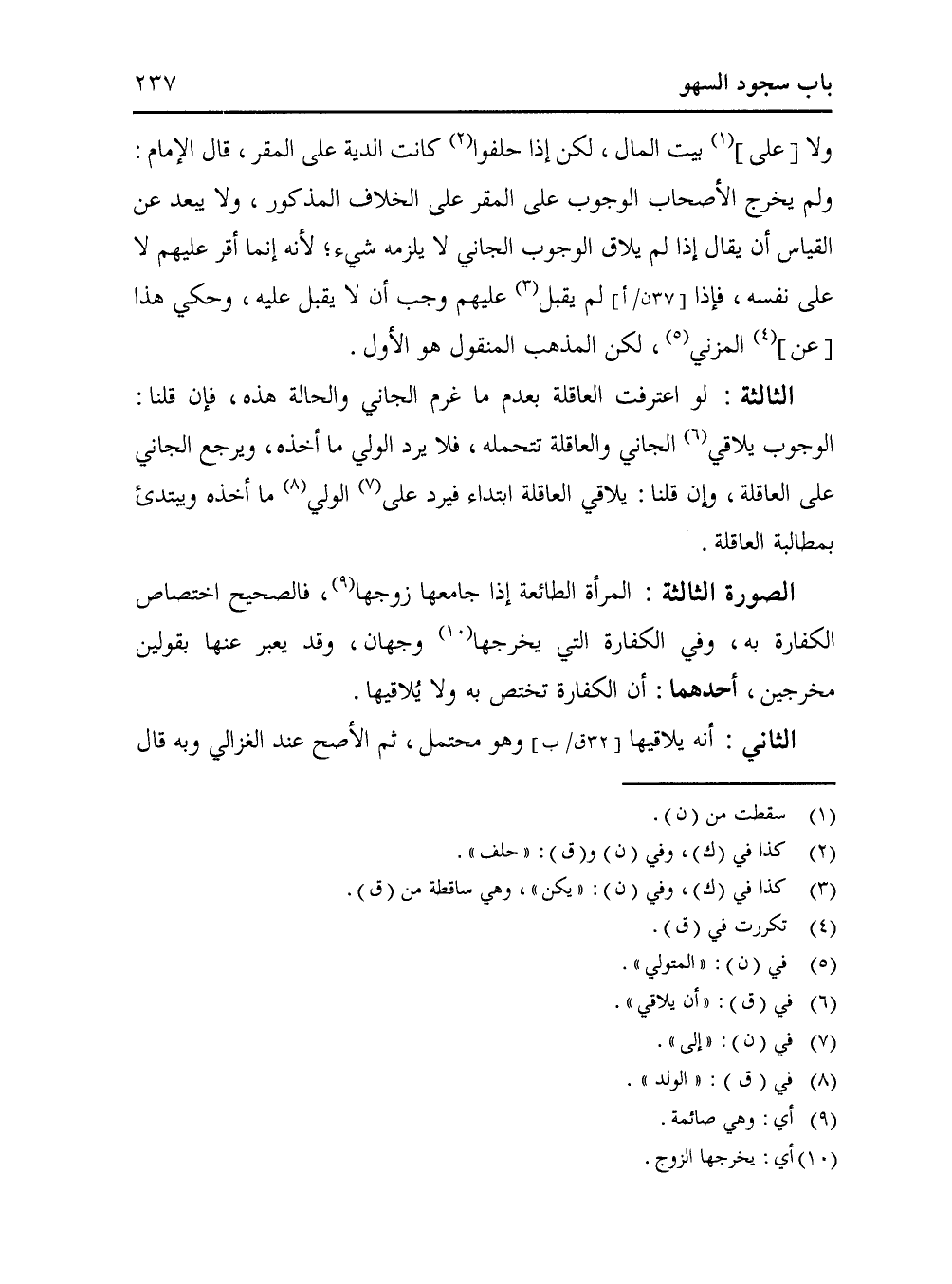 ولا [على] (¬1) بيت المال، لكن إذا حلفوا (¬2) كانت الدية على المقر، قال الإمام: ولم يخرج الأصحاب الوجوب على المقر على الخلاف المذكور، ولا يبعد عن القياس أن يقال إذا لم يلاق الوجوب الجاني لا يلزمه شيء؛ لأنه إنما أقر عليهم لا على نفسه، فإذا [37 ن / أ] لم يقبل (¬3) عليهم وجب أن لا يقبل عليه، وحكي هذا [عن] (¬4) المزني (¬5)، لكن المذهب المنقول هو الأول.