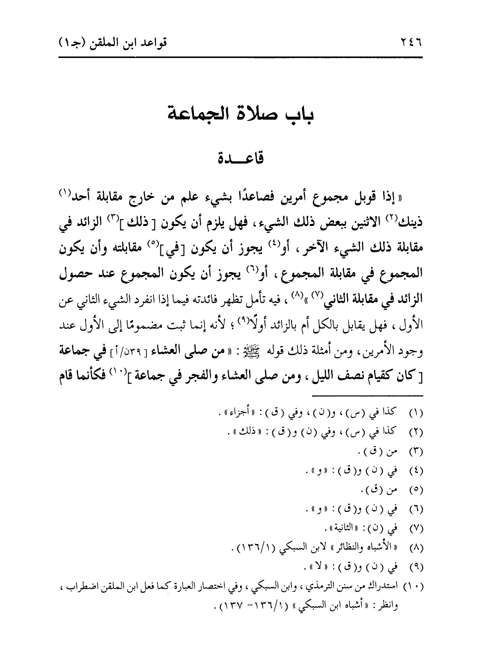 (¬8) "الأشباه والنظائر" لابن السبكي (1/ 136).