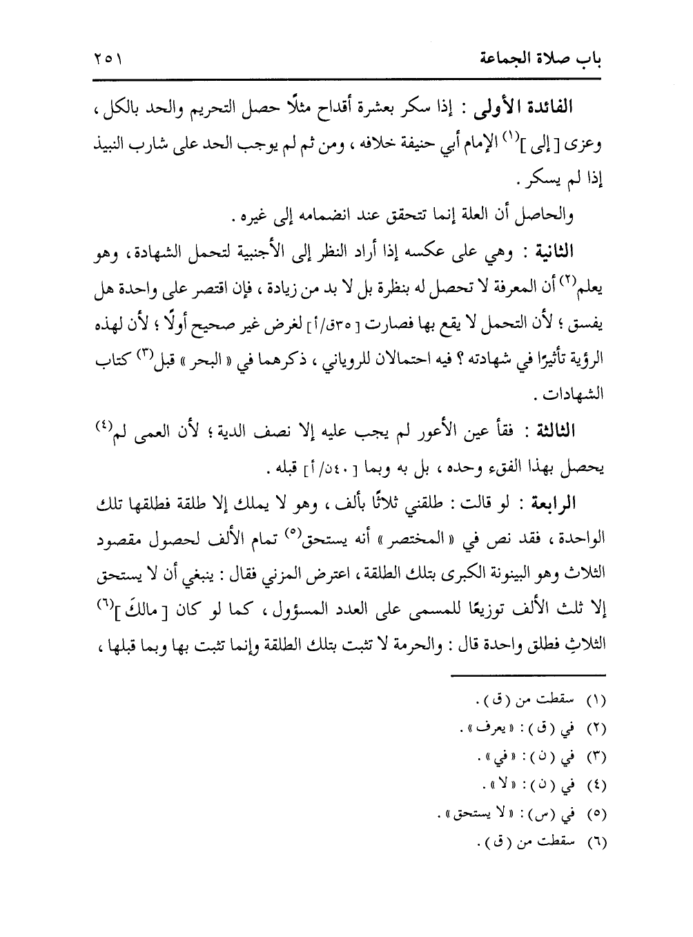 الفائدة الأولى: إذا سكر بعشرة أقداح مثلًا حصل التحريم والحد بالكل، وعزى [إلى] (¬1) الإمام أبي حنيفة خلافه، ومن ثم لم يوجب الحد على شارب النبيذ إذا لم يسكر.