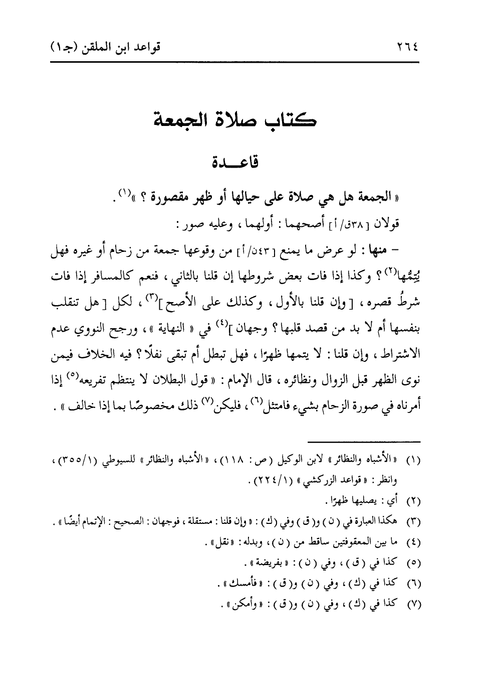 " الجمعة هل هي صلاة على حيالها أو ظهر مقصورة؟ " (¬1).