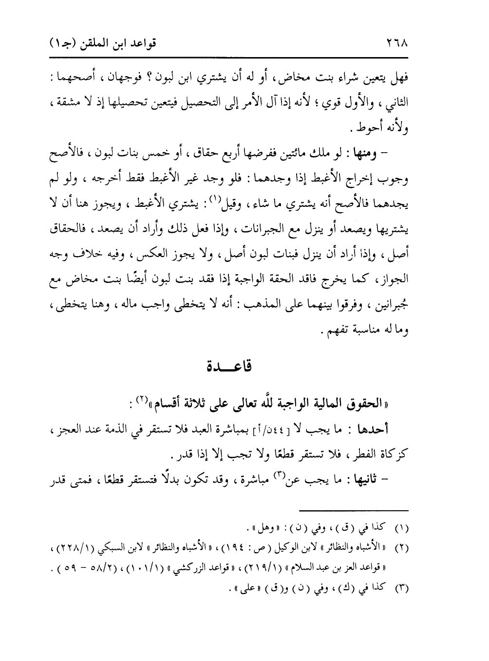 (¬2) "الأشباه والنظائر" لابن الوكيل (ص: 194)، "الأشباه والنظائر" لابن السبكي (1/ 228)، "قواعد العز بن عبد السلام" (1/ 219)، "قواعد الزركشي" (1/ 101)، (2/ 58 - 59).