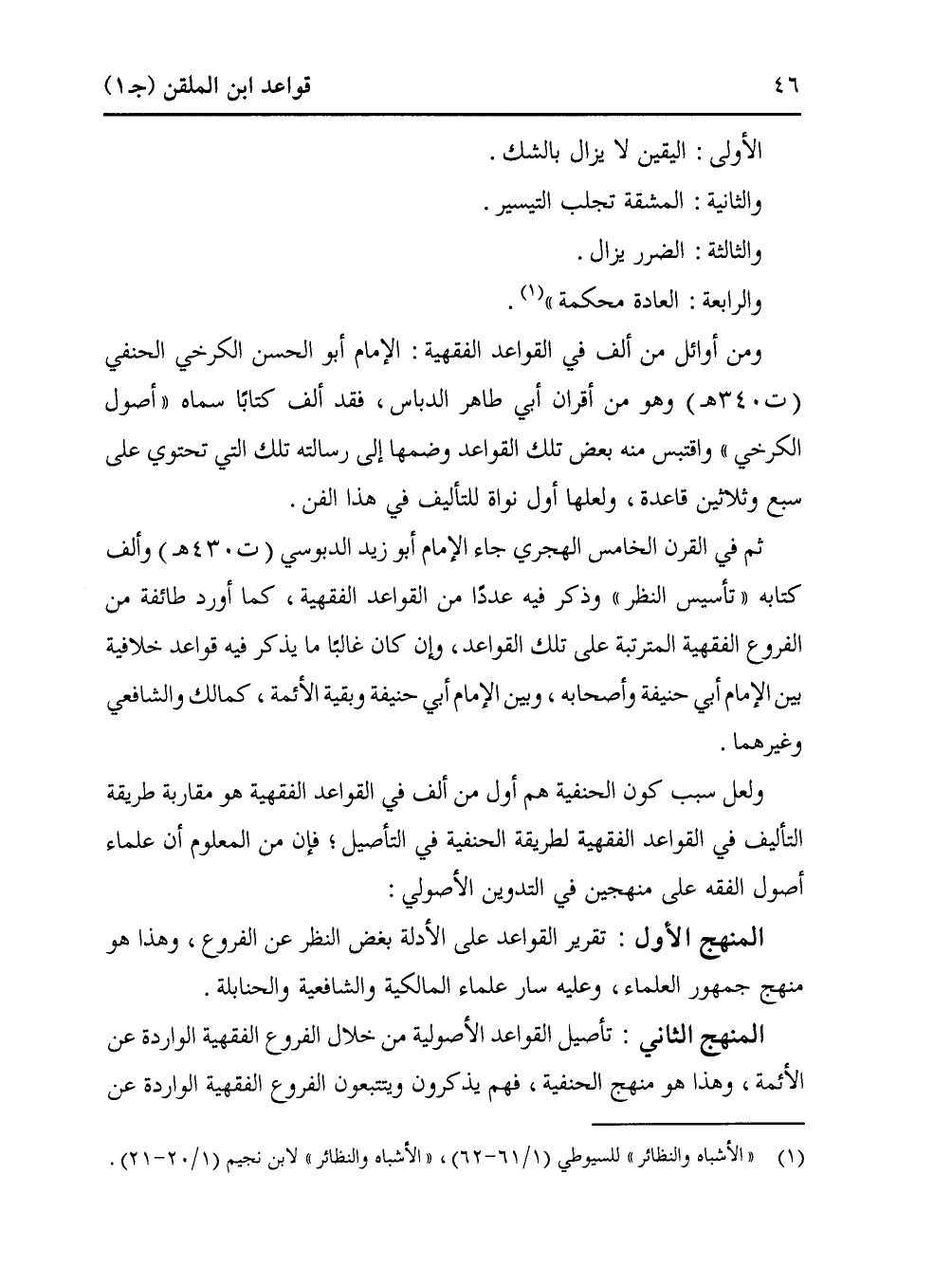 (¬1) "الأشباه والنظائر" للسيوطي (1/ 61 - 62)، "الأشباه والنظائر" لابن نجيم (1/ 20 - 21).