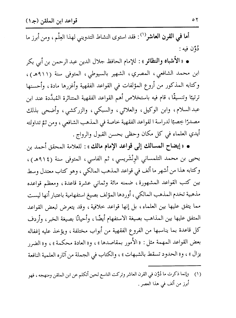 • "الأشباه والنظائر": للإمام الحافظ جلال الدين عبد الرحمن بن أبي بكر ابن محمد الشافعي، المصري، الشهير بالسيوطي، المتوفى سنة (911 هـ)، وكتابه المذكور من أروع المؤلفات في القواعد الفقهية وأغزرها مادة، وأحسنها ترتيبًا وتنسيقًا، قام فيه باستخلاص أهم القواعد الفقهية المتناثرة المُبدَّدة عند ابن عبد السلام، وابن الوكيل، والعلائي، والسبكي، والزركشي، وأضحى بذلك مصدرًا خِصبًا لدراسة القواعد الفقهية خاصة في المذهب الشافعي، ومن ثمَّ تداولته أيدي العلماء في كل مكان وحظى بحسن القبول والرواج.
