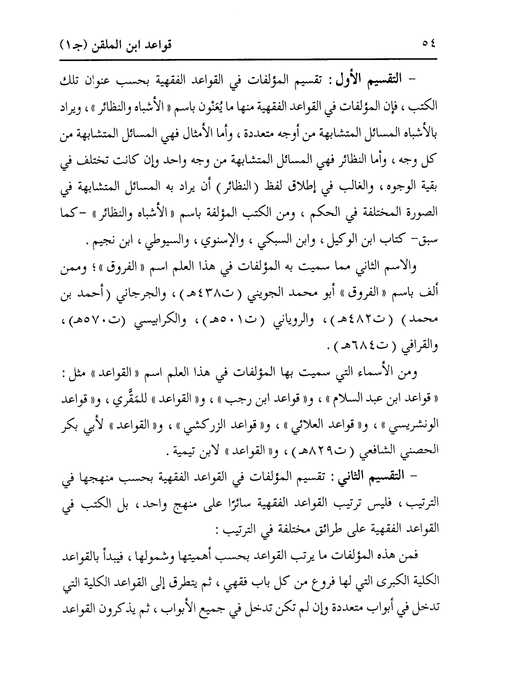 - التقسيم الثاني: تقسيم المؤلفات في القواعد الفقهية بحسب منهجها في الترتيب، فليس ترتيب القواعد الفقهية سائرًا على منهج واحد، بل الكتب في القواعد الفقهية على طرائق مختلفة في الترتيب: