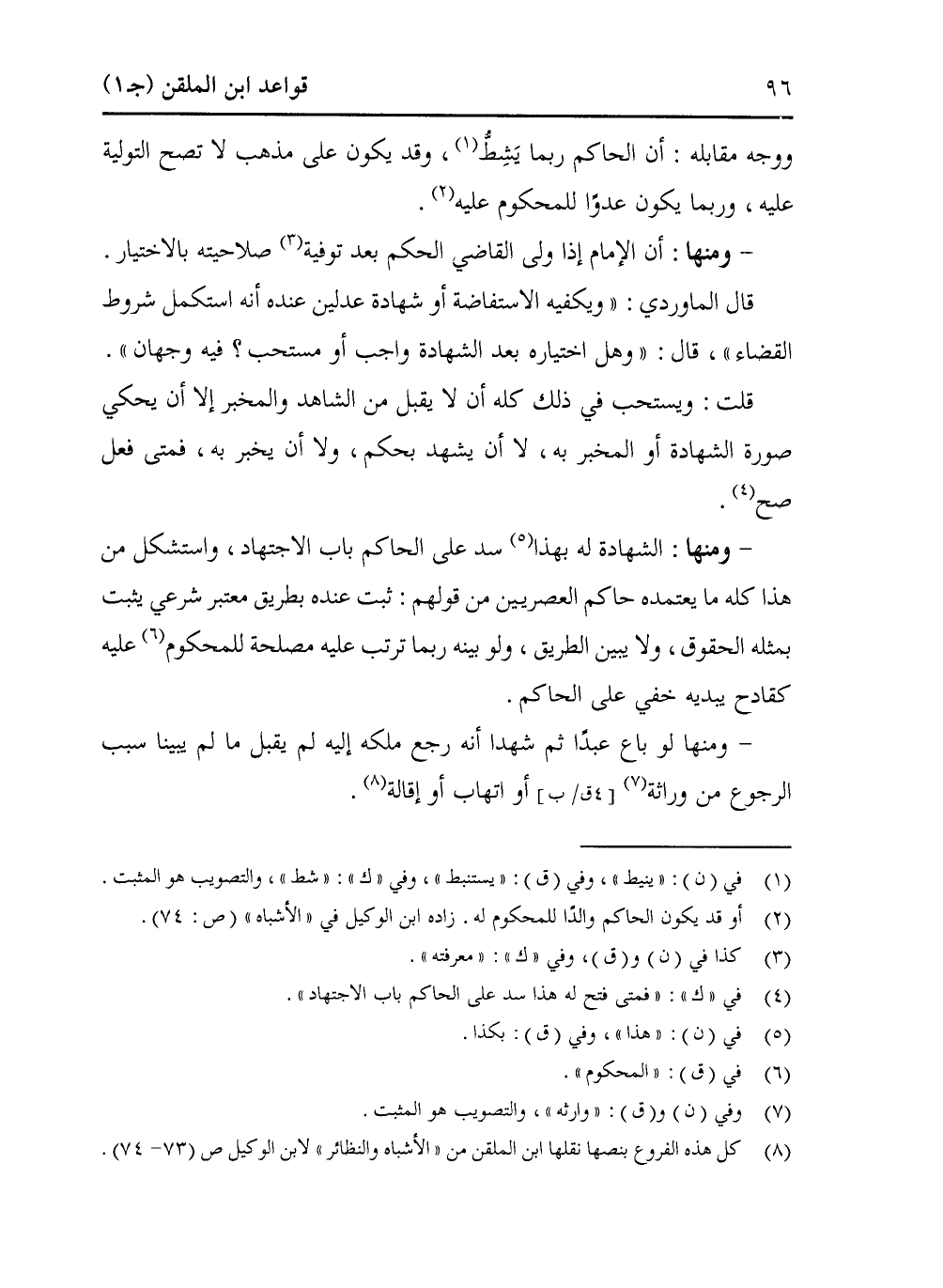 (¬8) كل هذه الفروع بنصها نقلها ابن الملقن من "الأشباه والنظائر" لابن الوكيل ص (73 - 74).