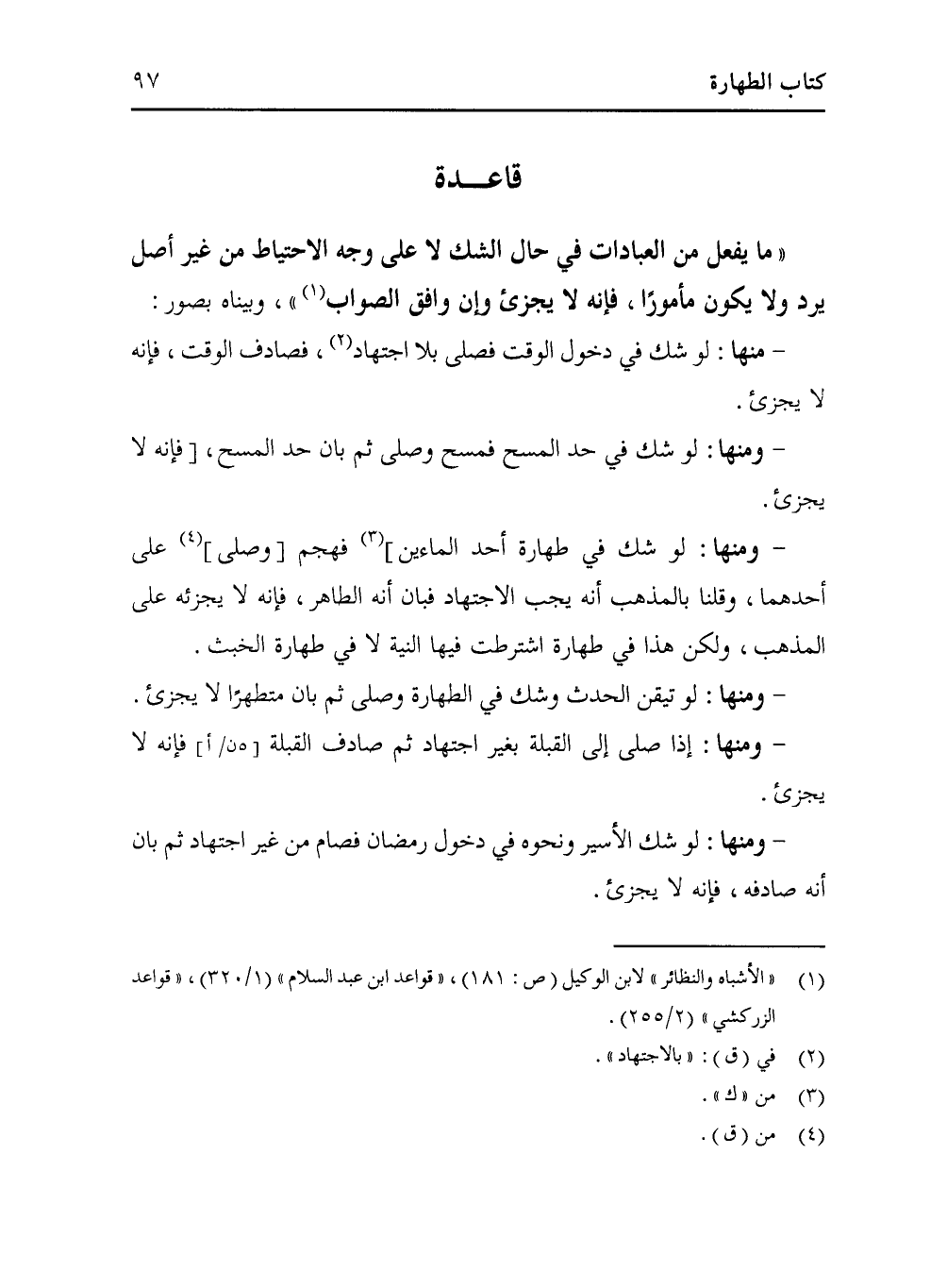 (¬1) "الأشباه والنظائر" لابن الوكيل (ص: 181)، "قواعد ابن عبد السلام" (1/ 320)، "قواعد الزركشي" (2/ 255).
