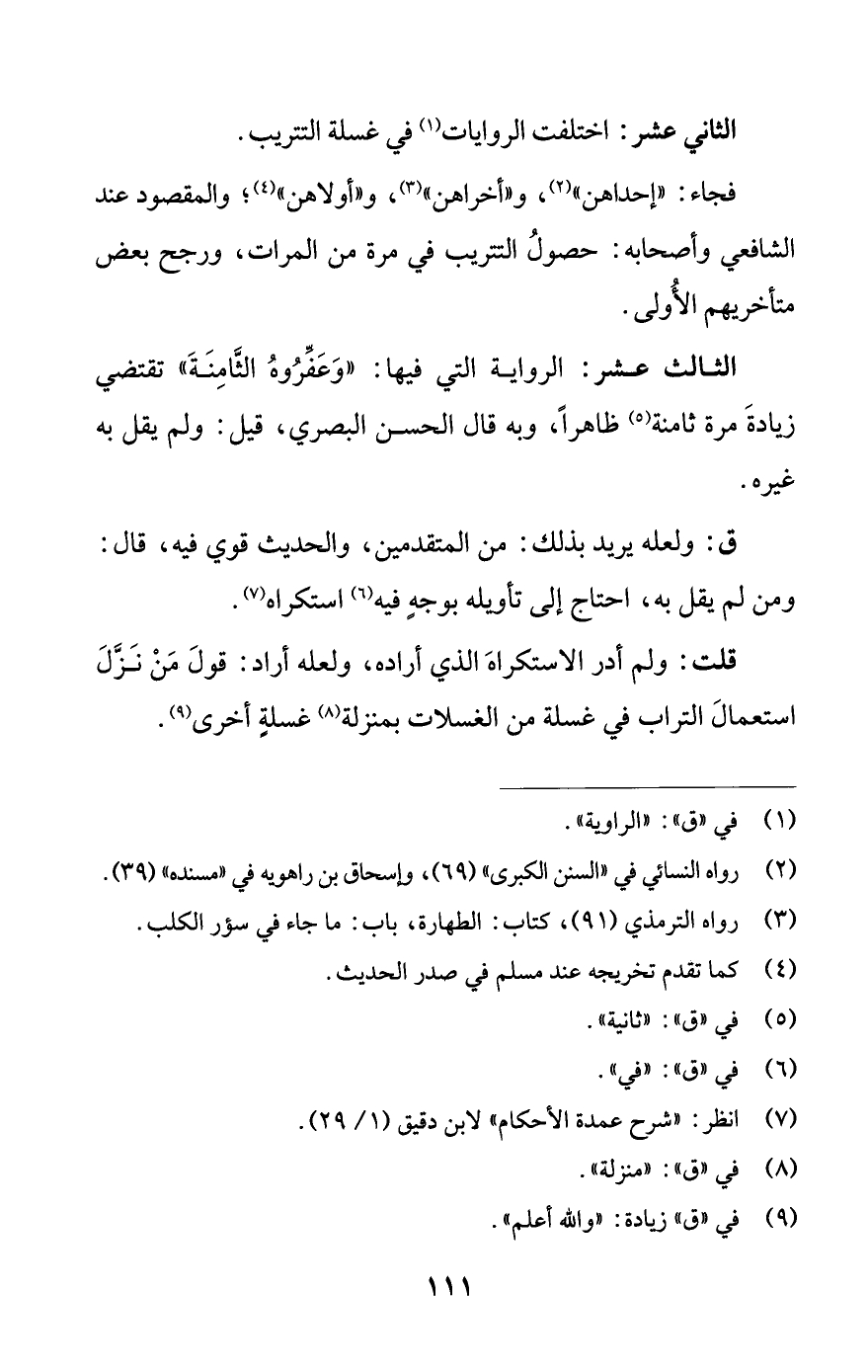 الثاني عشر: اختلفت الروايات (¬1) في غسلة التتريب.