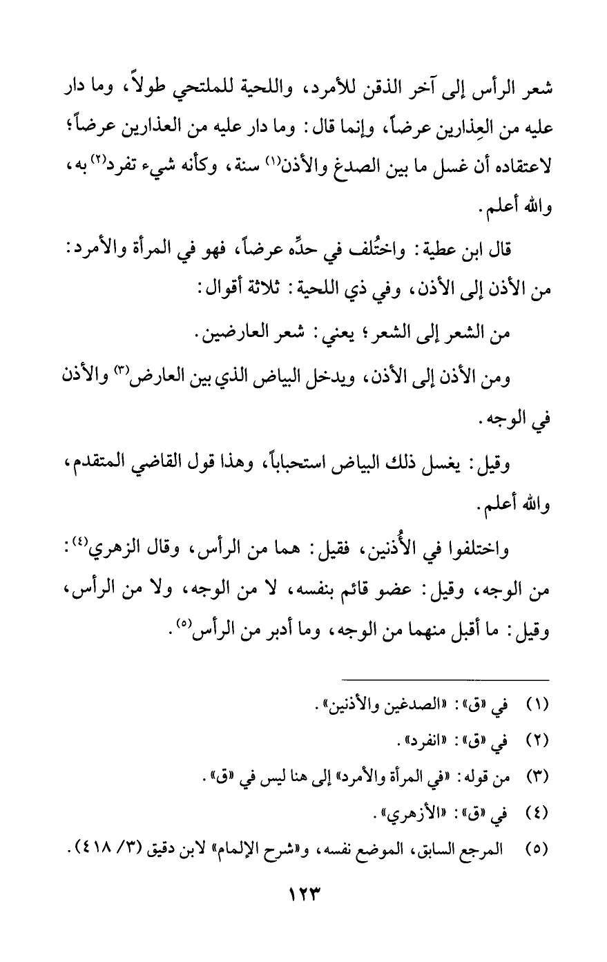 واختلفوا في الأذنين، فقيل: هما من الرأس، وقال الزهري (¬4): من الوجه، وقيل: عضو قائم بنفسه، لا من الوجه، ولا من الرأس، وقيل: ما أقبل منهما من الوجه، وما أدبر من الرأس (¬5).