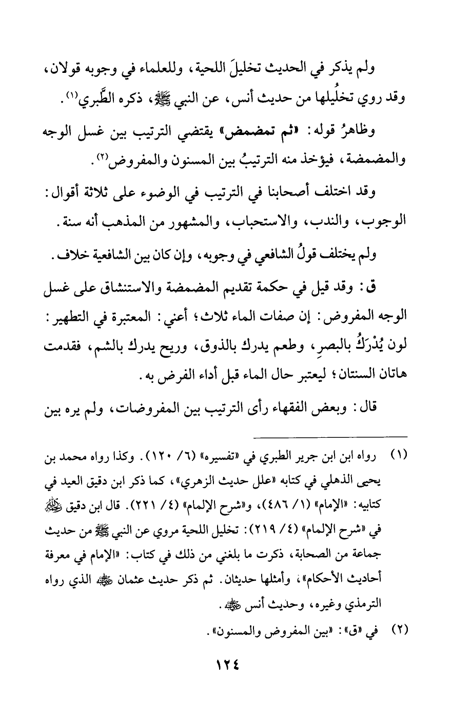 وظاهر قوله: «ثم تمضمض» يقتضي الترتيب بين غسل الوجه والمضمضة، فيؤخذ منه الترتيب بين المسنون والمفروض (¬2)،.
