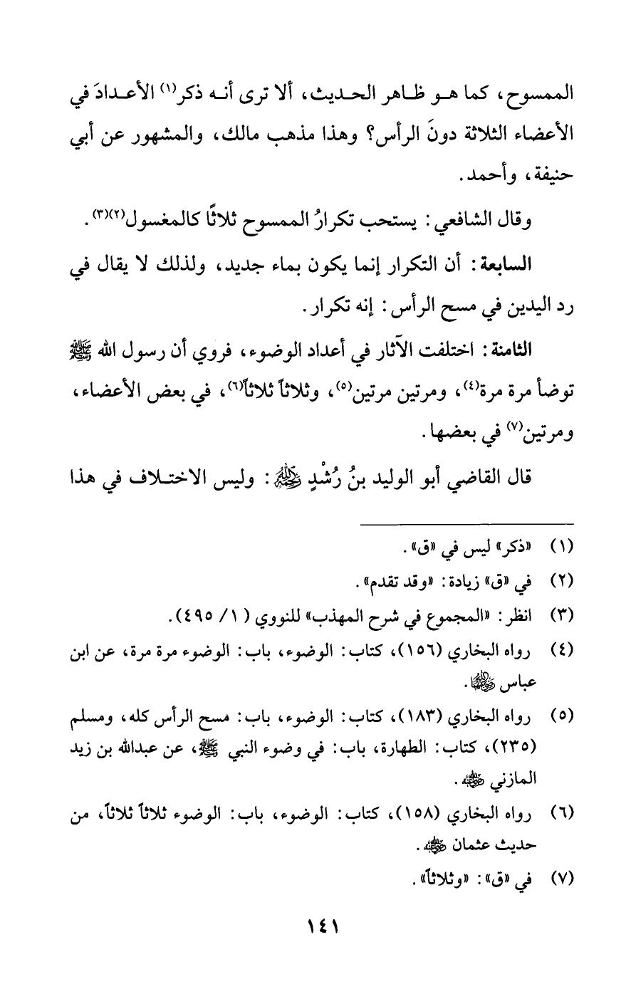 (¬5) رواه البخاري (183)، كتاب: الوضوء: باب: مسح الرأس كله، ومسلم (235)، كتاب: الطهارة، باب: في وضوء النبي - صلى الله عليه وسلم -، عن عبد اله بن زيد المازني - رضي الله عنه -.